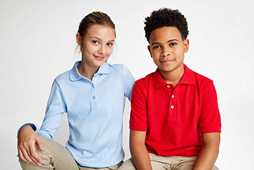 Description This short-sleeve polo is polished enough for the classroom yet comfy enough for the playground. Shrink-and fade-resistant in a breathable soft piqué knit, the wider cut ensures a more comfortable fit.