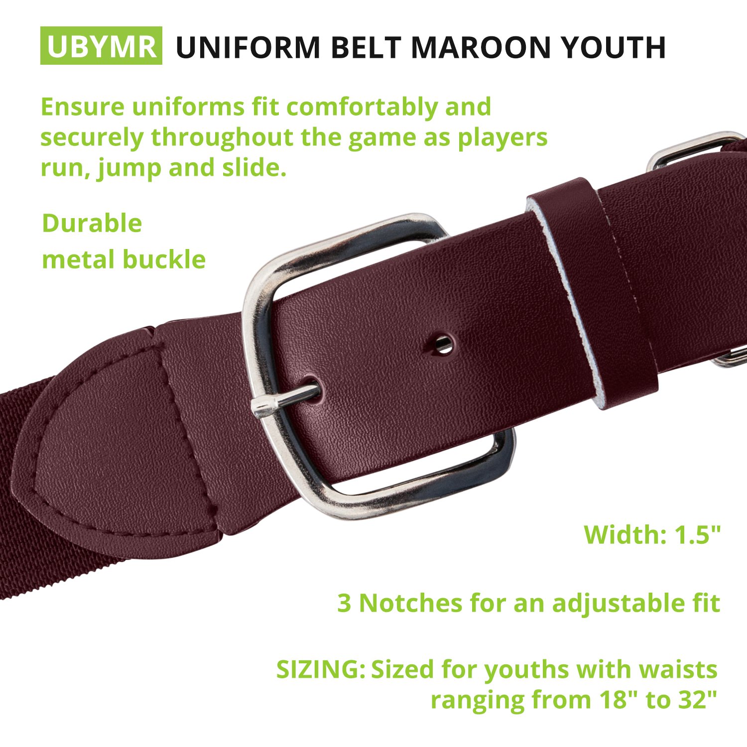 Ensure your uniform stays put with the Champion Sports Uniform Belt. Designed for versatility, this belt features an adjustable elastic band that stretches to fit youth and adult waists. A sturdy metal buckle and leather tab offer lasting durability, while the 1.5" width provides a clean, professional look. Choose from a wide range of colors to perfectly match your team's uniform.