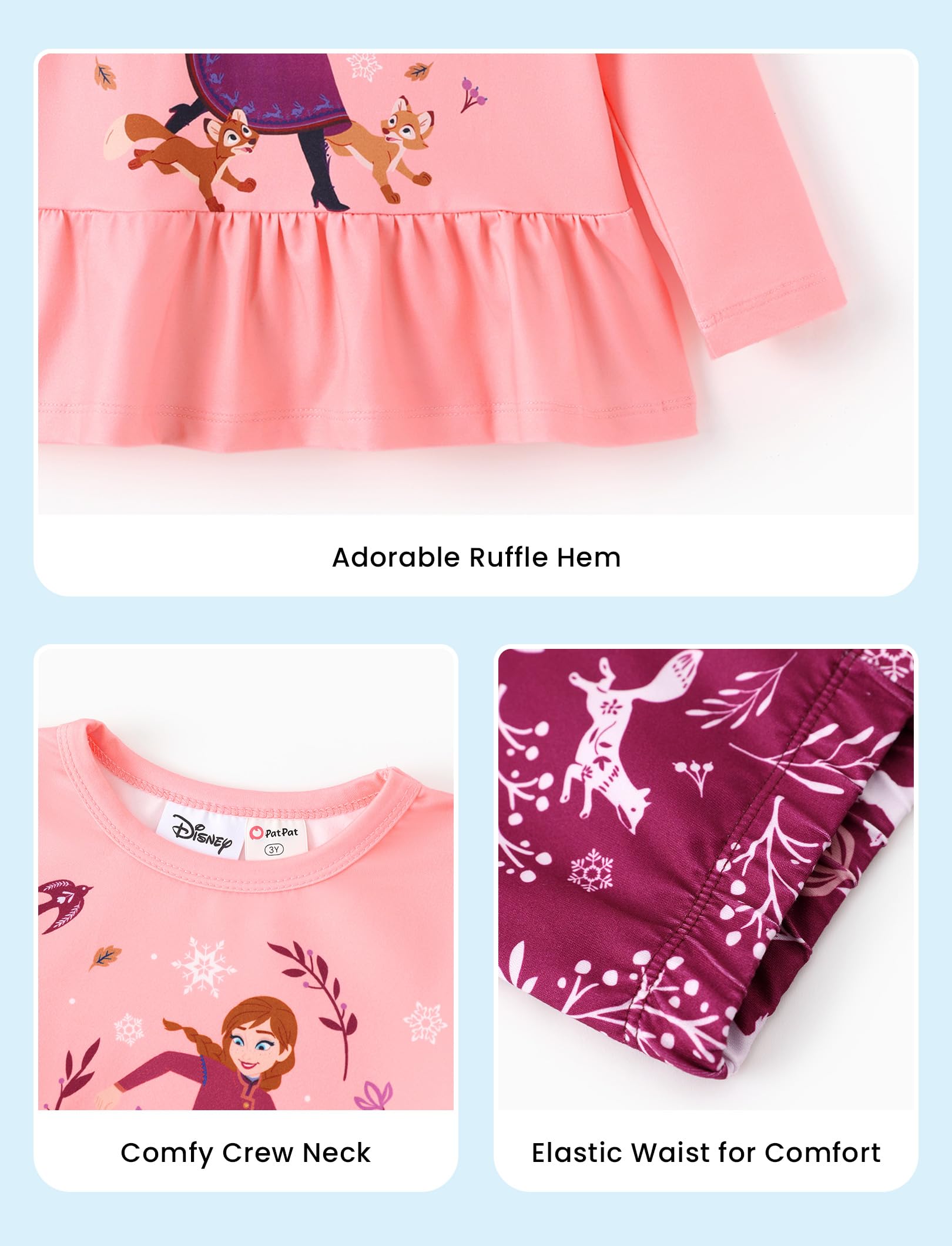 Disney Officially Licensed: Let your toddler step into a cozy fairytale with this officially licensed Frozen outfit for girls. Featuring Anna and her adorable forest friend — a curious little fox — this sweet 2 piece set captures the charm of fall and the spirit of adventure. Perfect for any Disney-loving little one who adores Frozen shirts and leggings girls love to wear