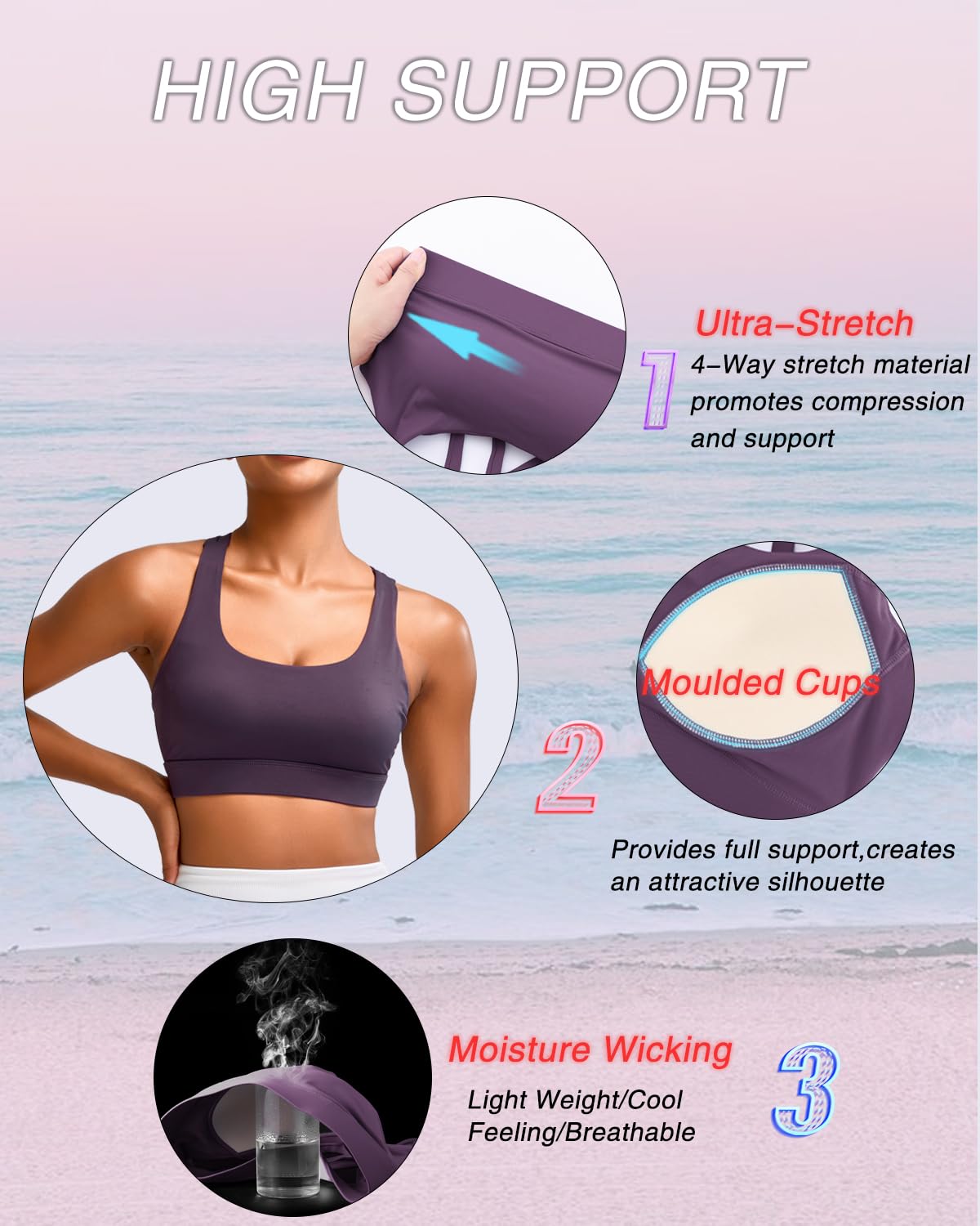 ✅ 【HIGH IMPACT SPORTS BRA】:Intense workouts call for extra support. RUNNING GIRL Sports Bra is strategically designed to deliver support and tailored for high impact activities like running, jumping and full body workouts. Featuring moulded cups and stretch straps for the perfect fit. Everything will stay in place and you can fully concentrate on aiming high!