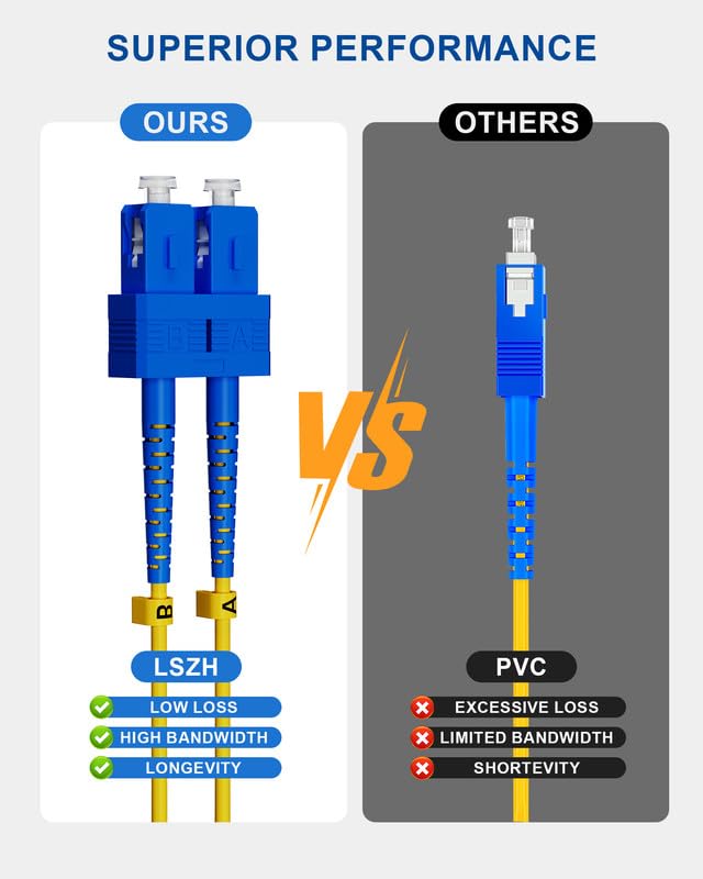 Premium Cable:Our sc to sc fiber patch cable boasts a 9/125μm fiber core, Ultra Physical Contact (UPC) Ferrule,an LSZH Jacket, and also complies with the TIA/EIA 568-C.3 industry standards, guaranteeing outstanding performance and long-lasting durability.