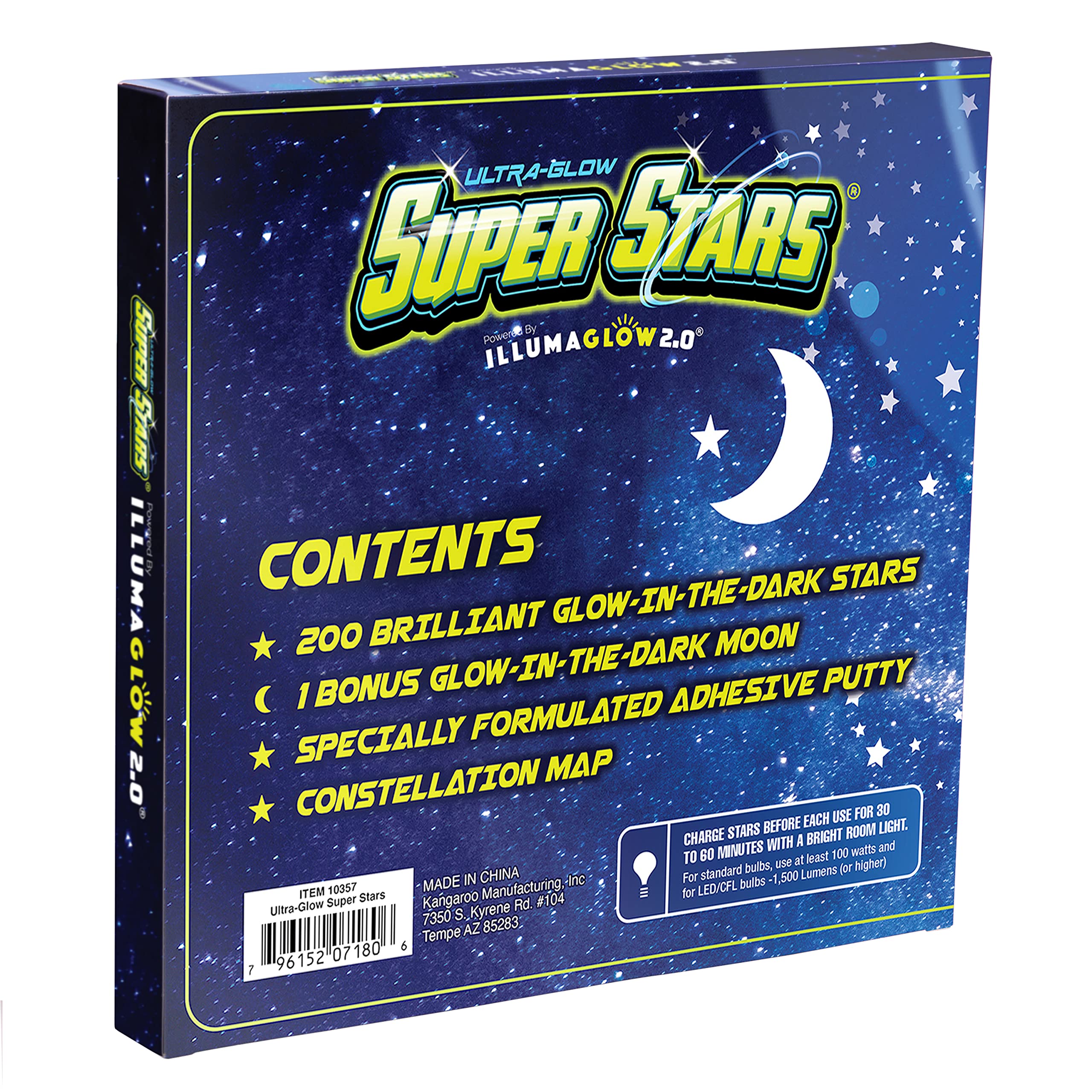 *Important* - Charging Up Your Glow Stars immediately before each use with a bright room light is key to maximum glow performance. For standard bulbs, use at least 75-100 watts and for LED or CFL bulbs, use one that is rated at 1,500 Lumens (or higher).