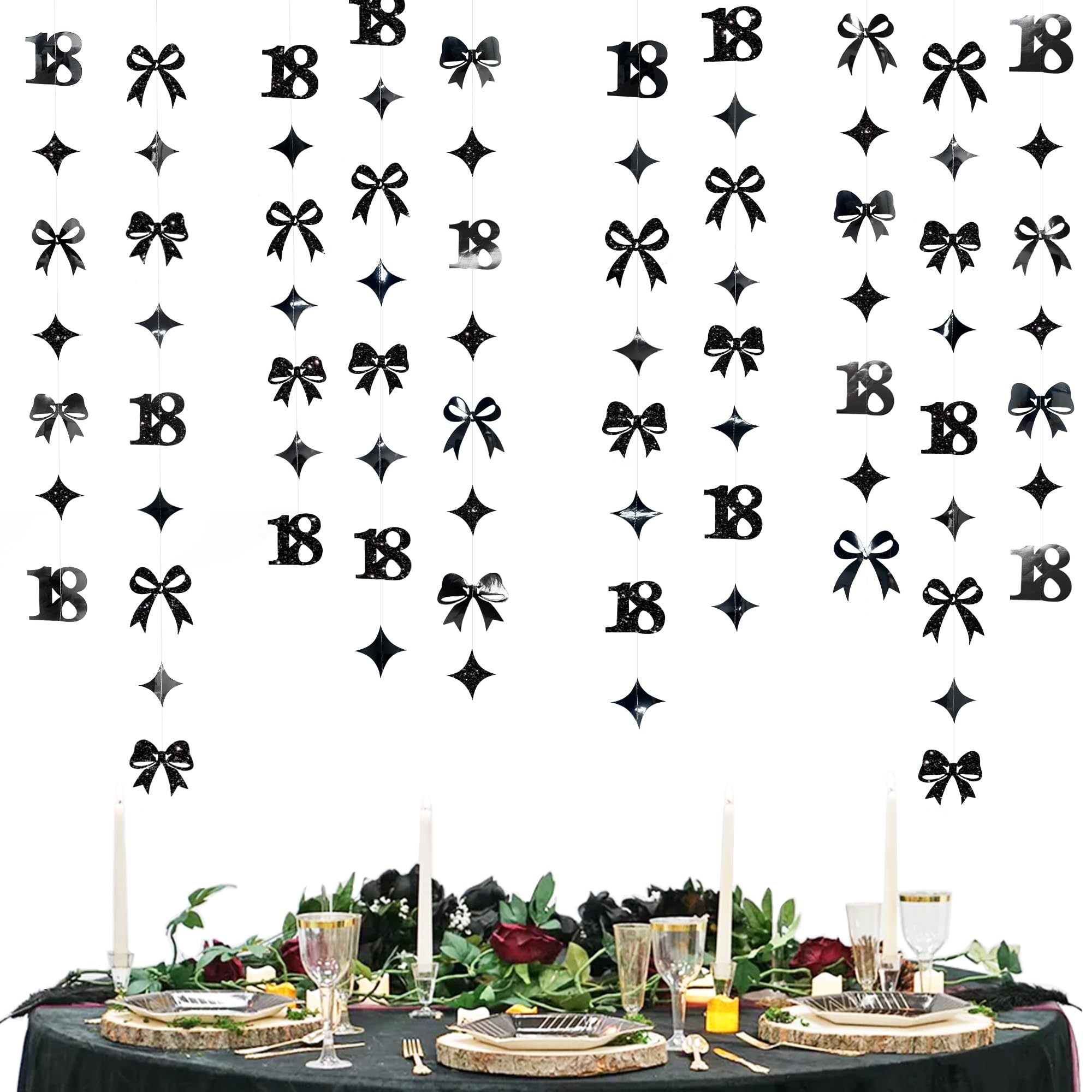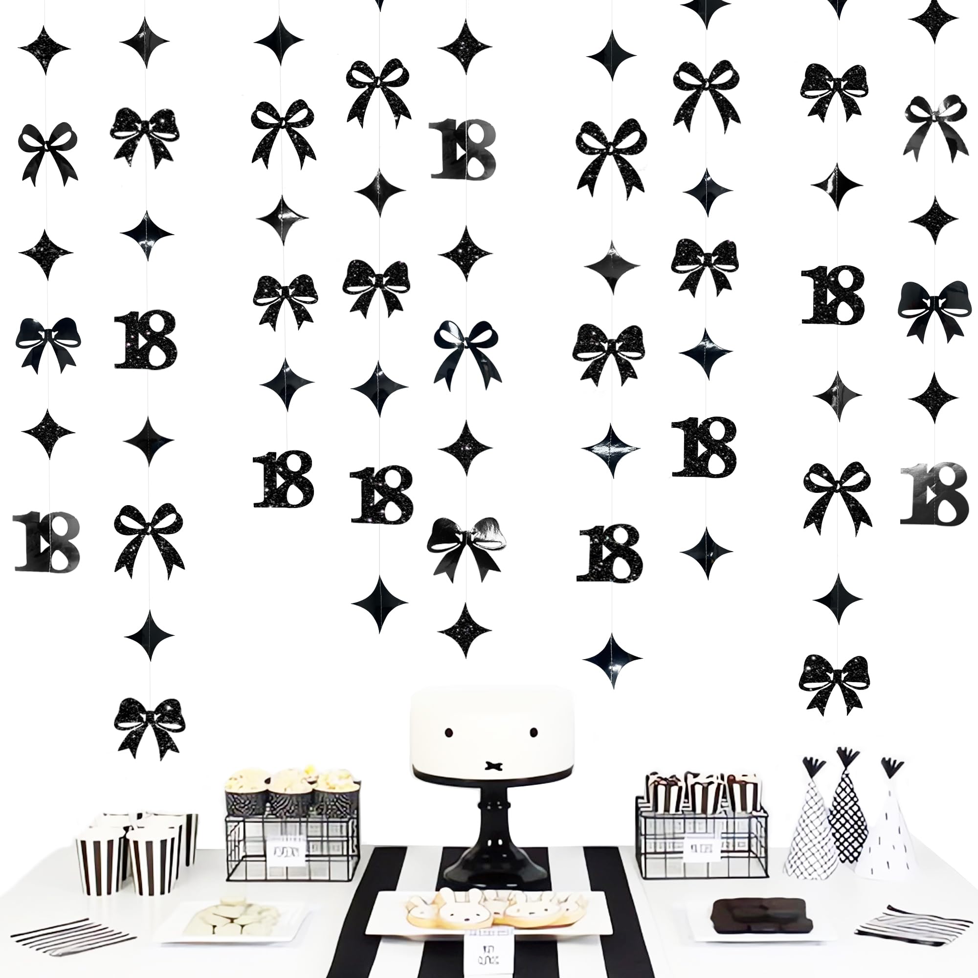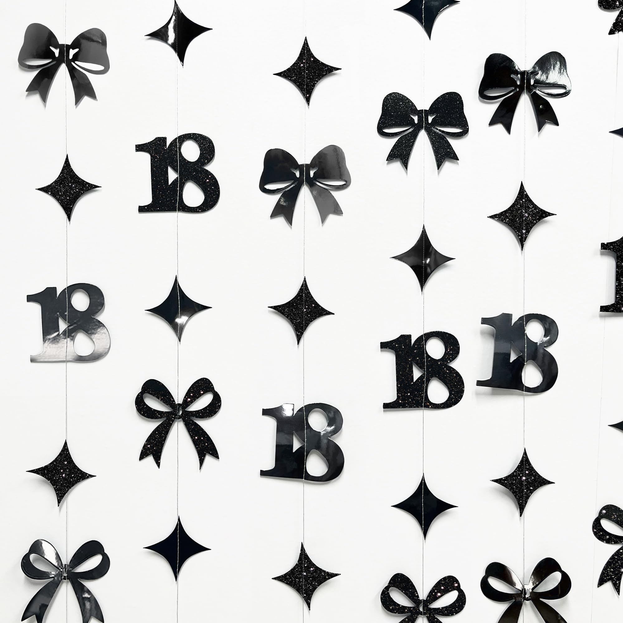 👍 Package includes - 4 strings of 10.8 feet/3.3 meters black number 18 and conquette bow with sparkling twinkle star and circle dots garlands , totally is 43.2 feet/13.2 meters