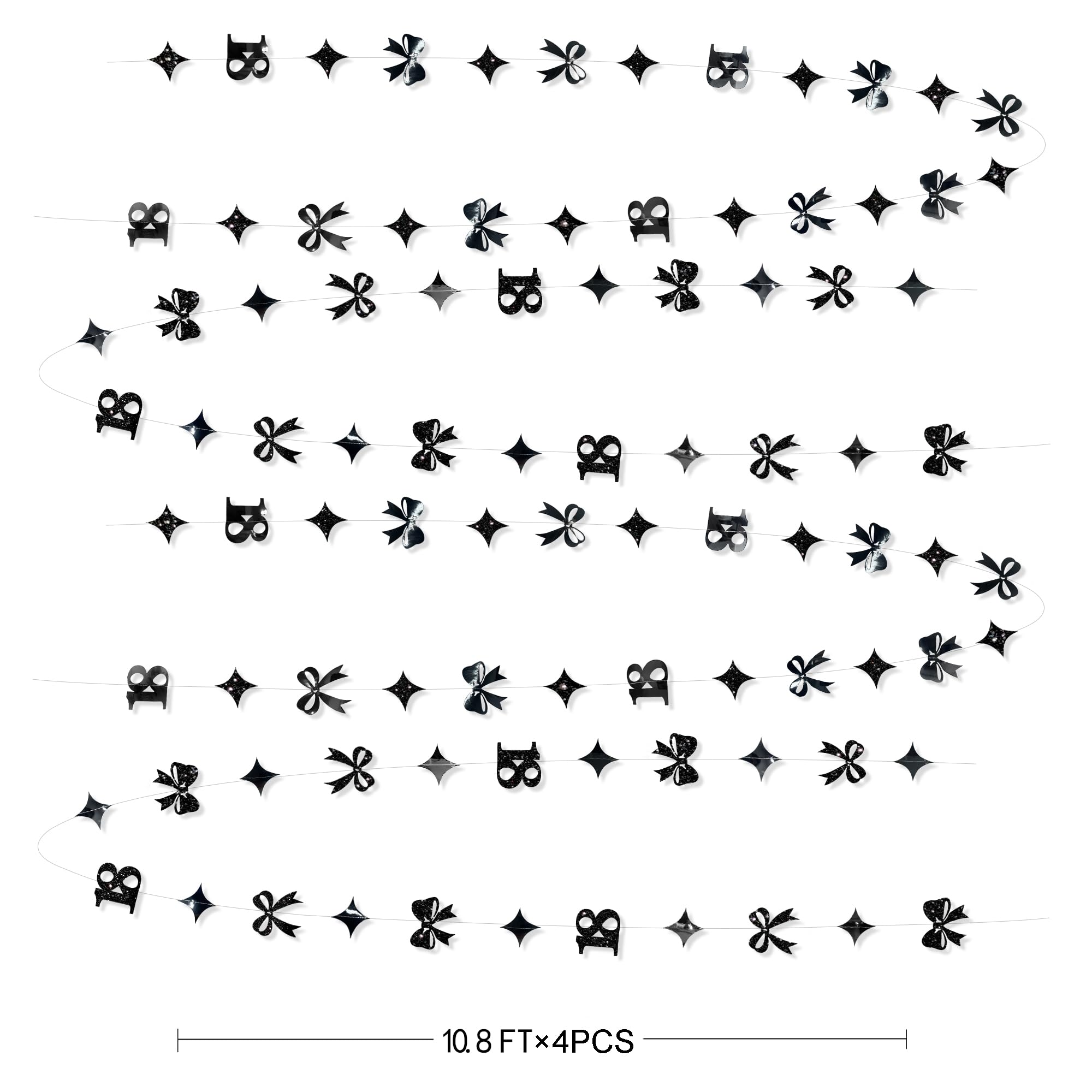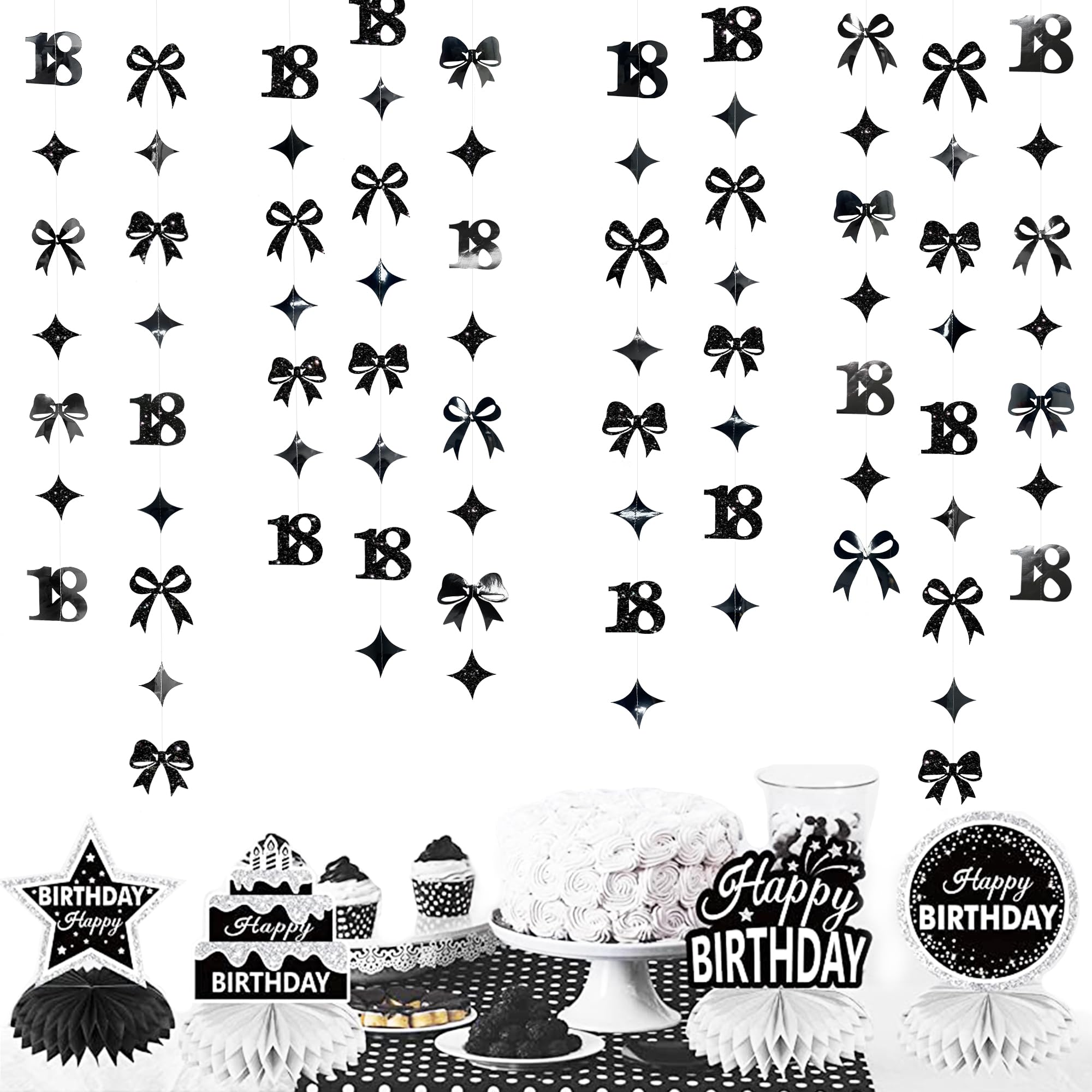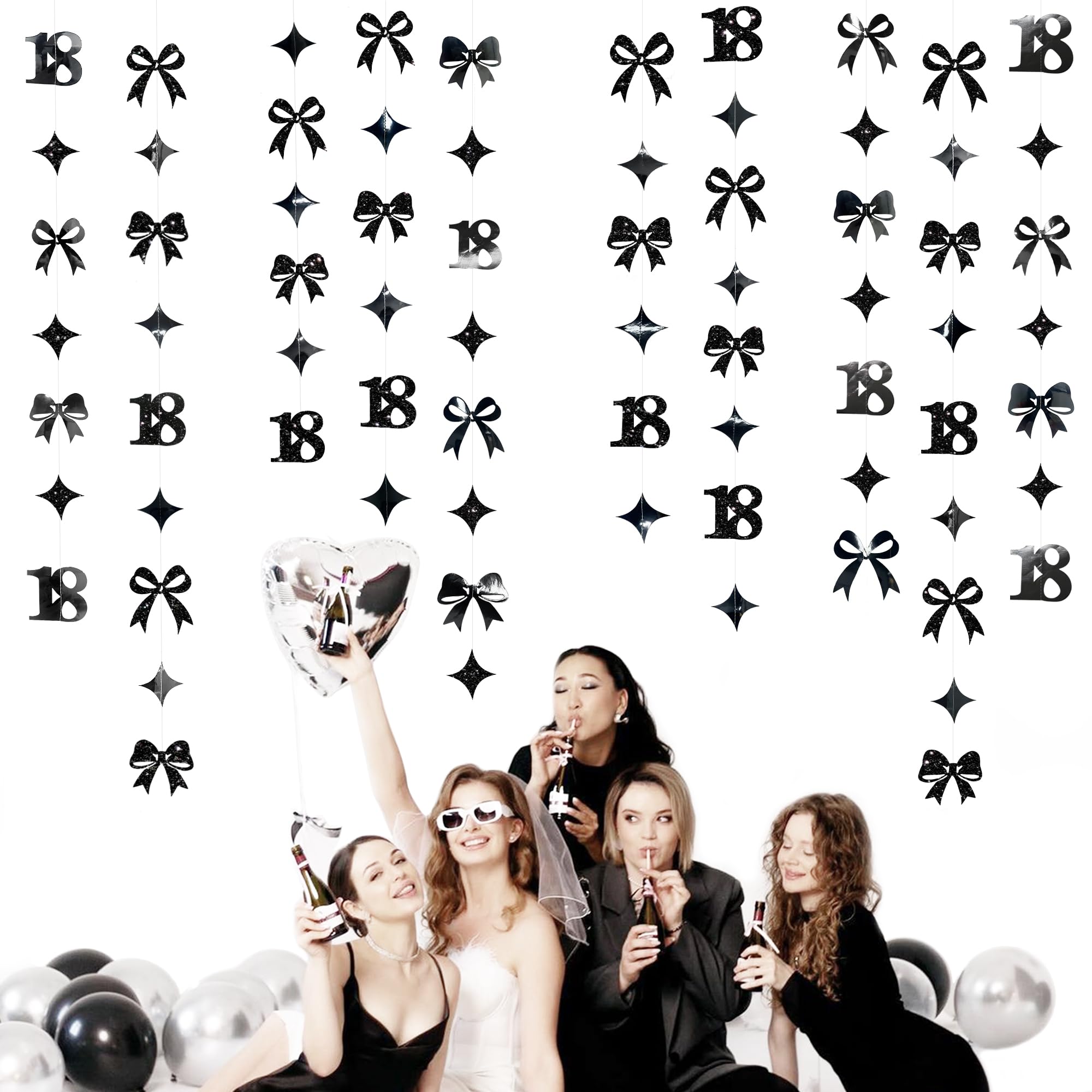 👍 Package includes - 4 strings of 10.8 feet/3.3 meters black number 18 and conquette bow with sparkling twinkle star and circle dots garlands , totally is 43.2 feet/13.2 meters