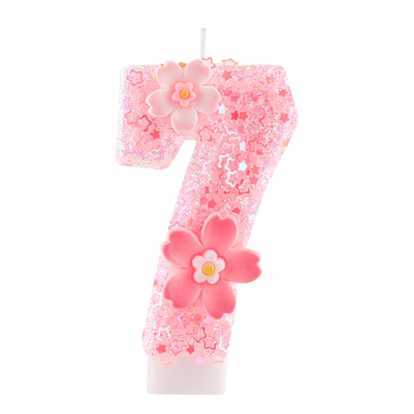 Hongplus Cherry Blossom Pink Number 7 Birthday Candle, 2.8in Cute Shiny Happy 7th Birthday Candle with Tray & Stick Girls 7 Candle for 7 Birthday Ideal Birthday Parties Cake Decoration & Gifts 3D Design Shinning Glitter Cherry Blossom Birthday Number Candles Features: Vivid Delicate appearance 3D visual sense: The pink cherry blossom happy birthday cake candles are meaningful for you to celebrate your girls spring pink birthday and nice cake topper decoration for embellishing your cake and cupcake,creating lovely atmosphere and adding a touch of elegant. Adapt to the venue: Ideal pink flower cake decoration for many occasions, such as girls 1st birthdays, pet birthdays, baby showers, anniversaries, retirement parties, family reunions, weddings, must-have items for party cake, bring you memorable and meaningful sweet party. Specifications: Quantity: 1 piece Material: wax Candle length: approx. 7.1cm/2.8in Tray is approx. 2.8cm/1.1in in diameter Stick is about 6.3cm/2.48in long. Color: Pink Package includes: 1 x Shinning Pink Cherry Blossom Number 7 Birthday Candle for Girls Birthday Party Decoration Warm notices: Please allow little error on the size due to manual. Do not leave the lighted candles unattended. Please place candles out of reach of children. And please do not light candles on or near flammable materials. Please keep the candle away from the fire when not in use, when burning, adult's supervision is needed.