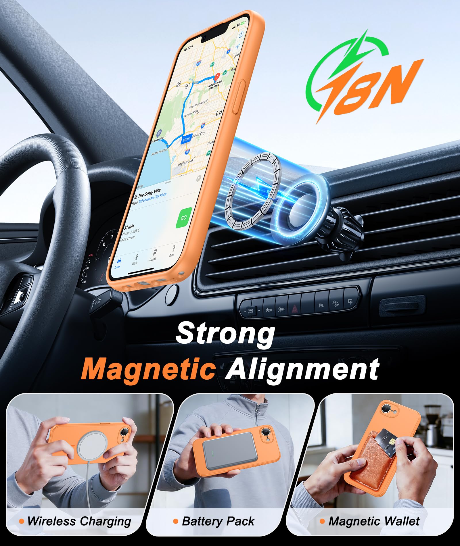 Ultra-Strong Magnetic: Built with 38 built-in N56 powerful magnets providing 18N of magnetic force—nearly 7 times stronger than ordinary cases, never Shaken off Even Violent Swinging. Compatible with MagSafe chargers for fast wireless charging and all accessories like magnetic power banks, card holders, wallets, and car mounts