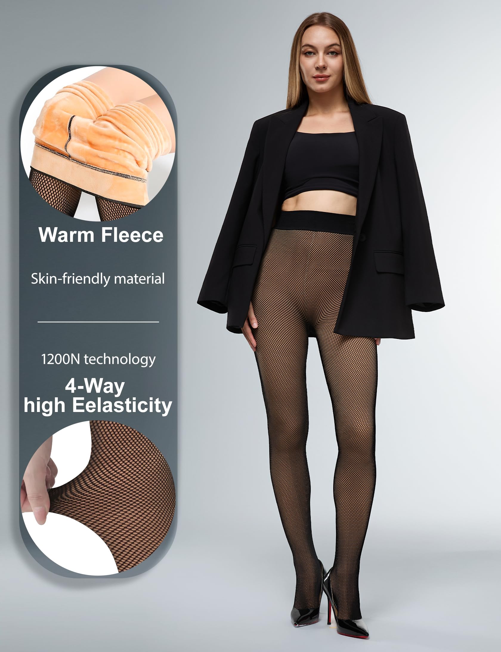 【FAKE TRANSLUCENT DESIGN】: Fake translucent tights look like a sheer stocking from the outside, but the inside is filled with warm fleece. Not only keeps you warm in the cold season, but also shows off your figure. In addition to classic and versatile colors such as black and brown, we have also added a variety of fishnet pantyhose and dot tights styles. Various styles women tight can easily follow your all daily collocation