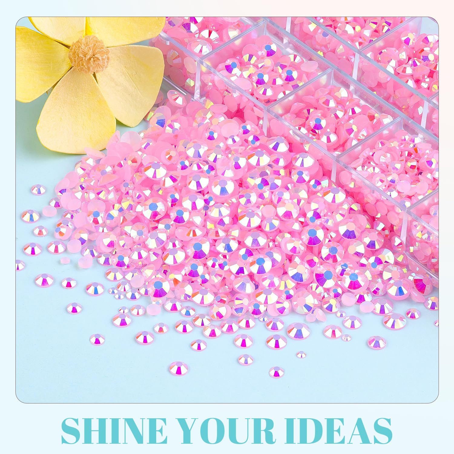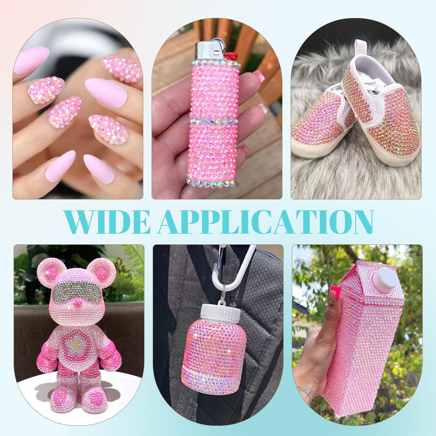 💎WIDE APPLICATION -- These sparkling iridescent resin crystals are perfect for creating dazzling looks. Use them for bedazzling DIY crafts like shoes, tumblers, mugs, bottles, phone cases, popsockets, scrapbooks, photo frames, diamond paintings, greeting cards, bags, glasses, guitars, keychains, hats, masks, hair clips, bracelets, wristbands, clothing, wedding dresses, and more. Apply it to what you want to bling!