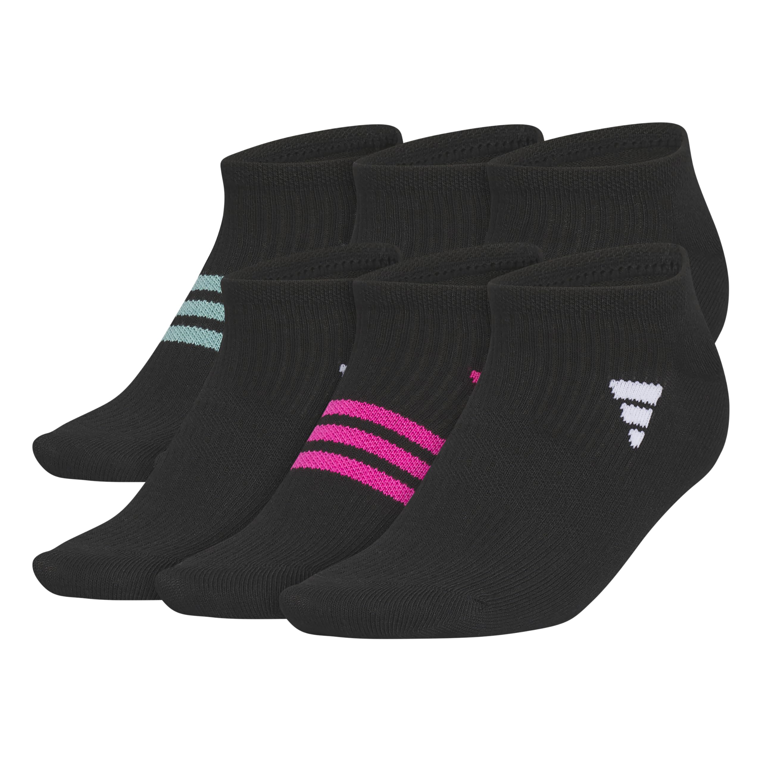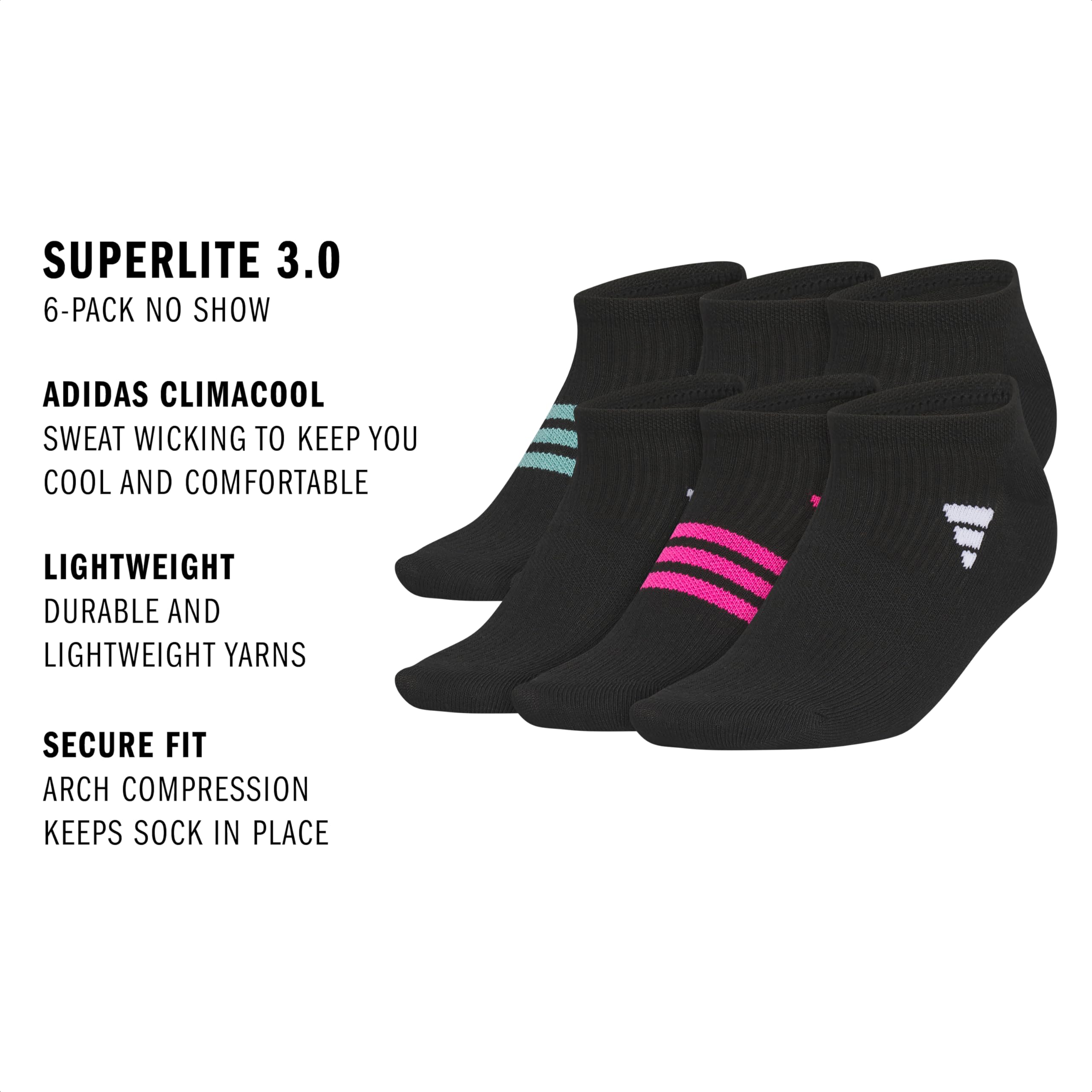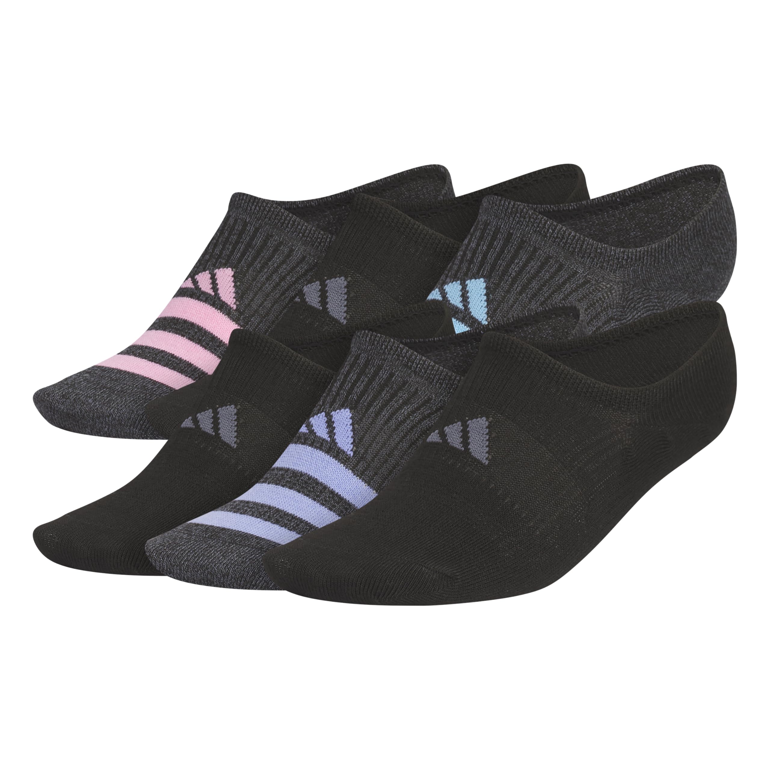 Description Who wants to think about their feet all day? With a super-light construction and no-show length, these adidas socks stay off your mind while upping your comfort. Arch compression helps support your feet, while moisture-wicking yarn keeps them sweat-free and happy.