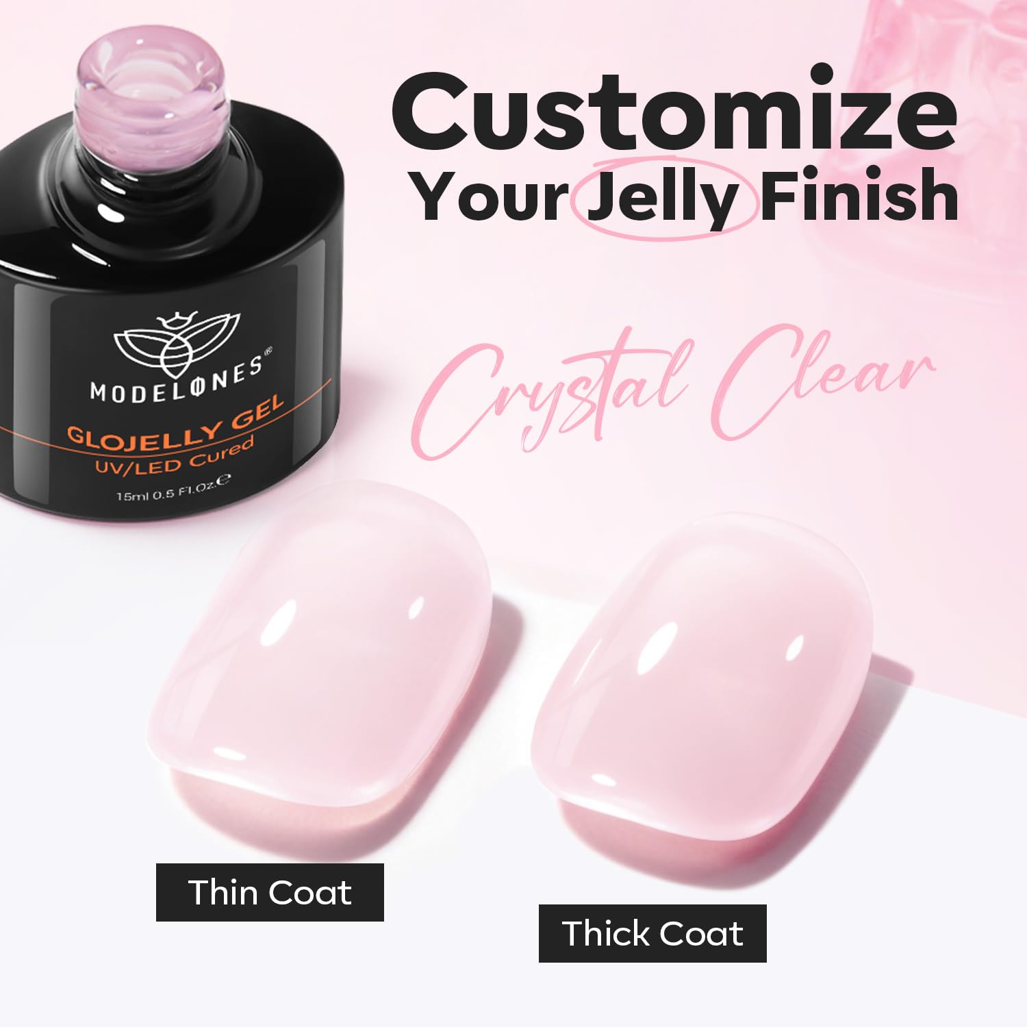 15ml Full Size: Modelones translucent pink building gel for nails 15ml full-size bottle offers excellent value for long-term use. Cures smoothly with minimal odor. A perfect choice for DIY nail lovers and a thoughtful gift for nail art enthusiasts