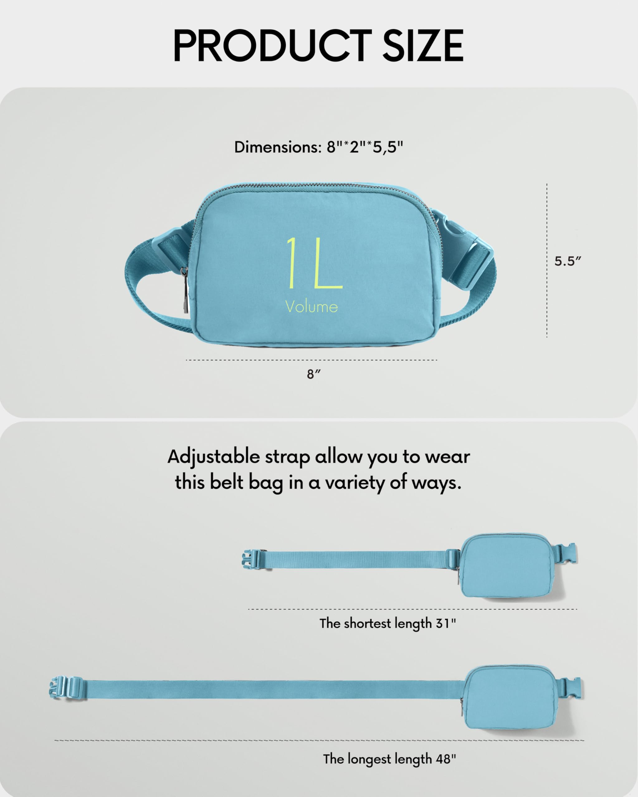 Versatile Style: Adjustable Strap allow you to wear this belt bag in a variety of ways. It can be carried as cross bag, shoulder bag, waist bag or handbag. It’s all up to you.