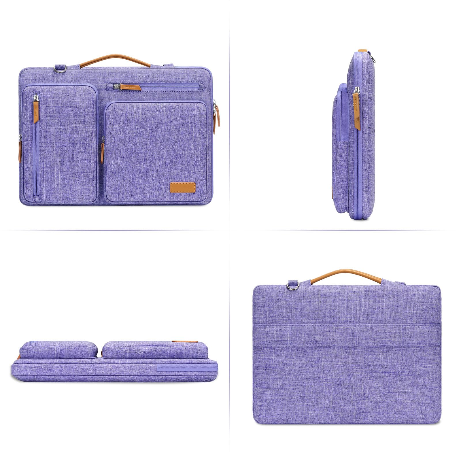 The Laptop Sleeve Bag with Handle & Adjustable Shouler Strap. Removable and adjustable padding shoulder strap with a shoulder pad varied from 28.54 inch to maximum 52.56 inch. You can use it as shoulder bag, laptop carrying case, sleeve bag, handle bag, messenger bag, crossbody bag and briefcase in whatever way you like. Extendable PU handle design makes it to carry your laptop around in comfort, you can also tuck away the handle