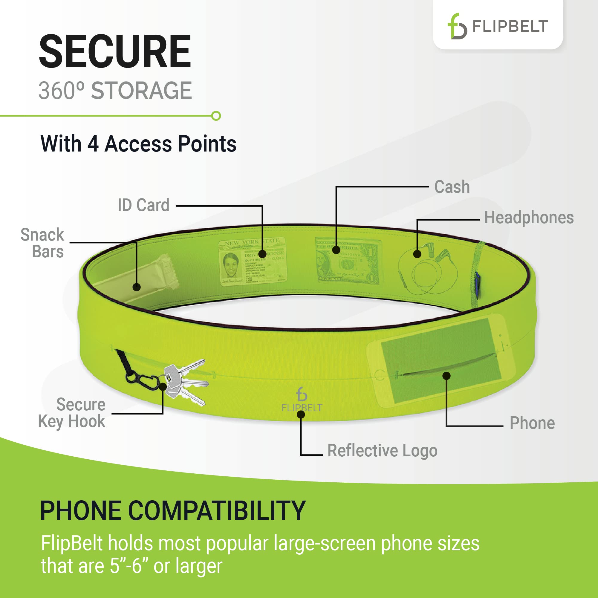 MONEY & PHONE POUCH: The FlipBelt features 4 pocket openings to slip in all your must-have items, like cards, cash, and earphones, and it even has an internal key hook for added security. It’s bounce-free storage for your phone during your workout and is compatible with screens 5"–6" and larger.