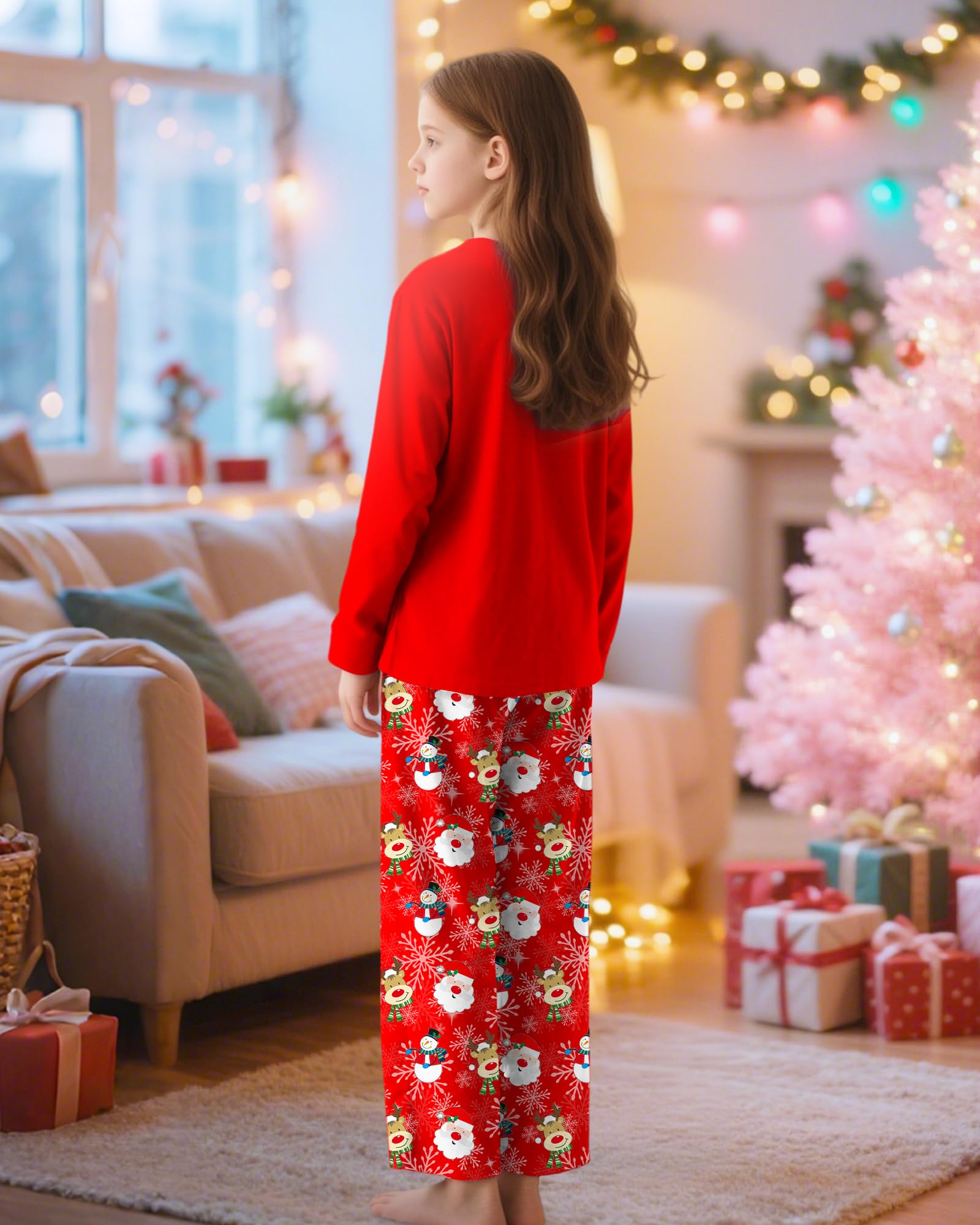 【Christmas Pjs for Kids】This classic long sleeved girls Christams pajamas is made of high quality fabrics, which is smooth, soft, light and breathable, allowing your lovely children to have a good night's sleep!