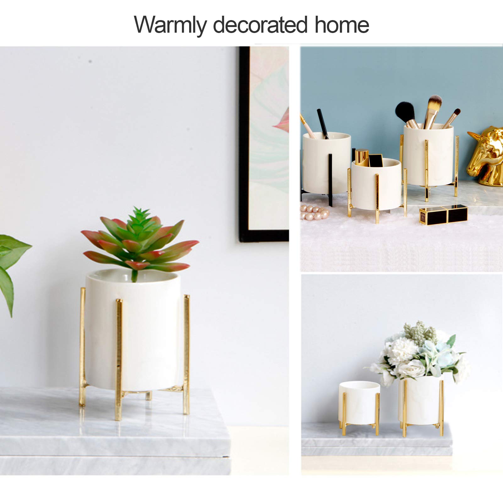 【Ceramic pen cup+Solid Metal cross】 Our pencil holder is crafted from durable ceramic,Combined with a metal cross, The bottom will not touch the desktop, and the stability is good.