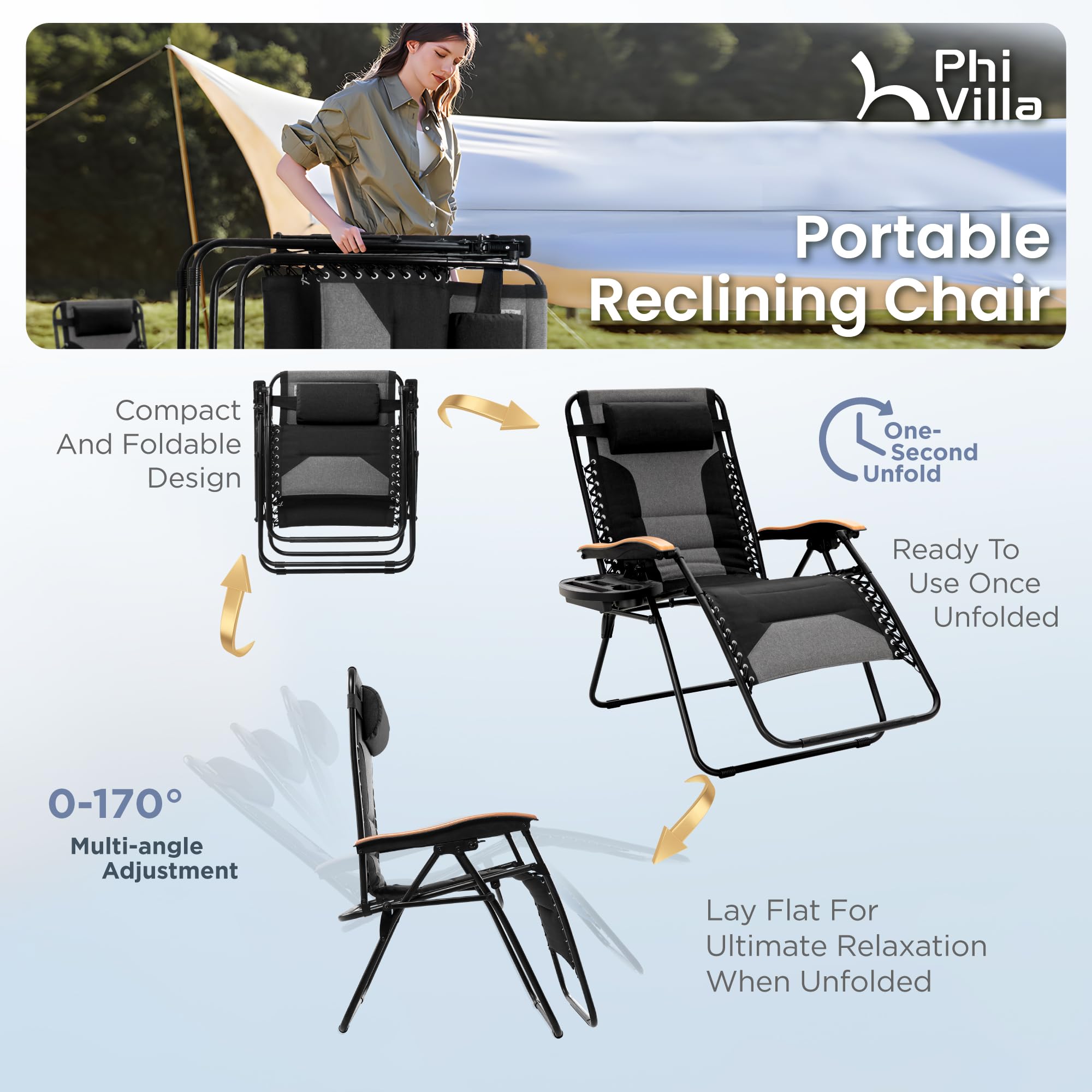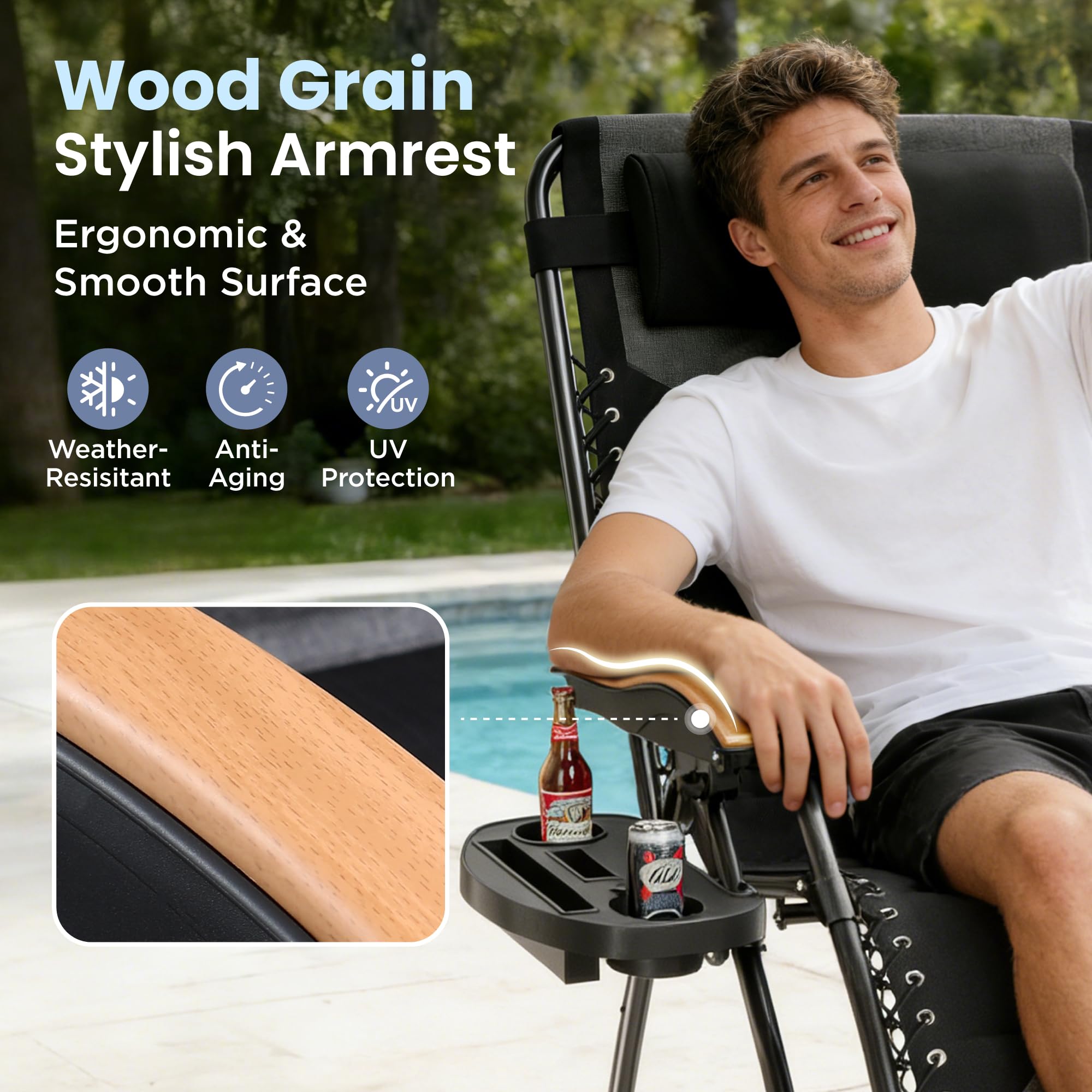 Adjustable Position: The Anti Gravity Recliner is designed with a locking system and can be adjusted to any positions with 0-170 degrees to your preferences. Smoothly glides to an ergonomic zero-gravity position, with elastic cords that immediately adjust to your body