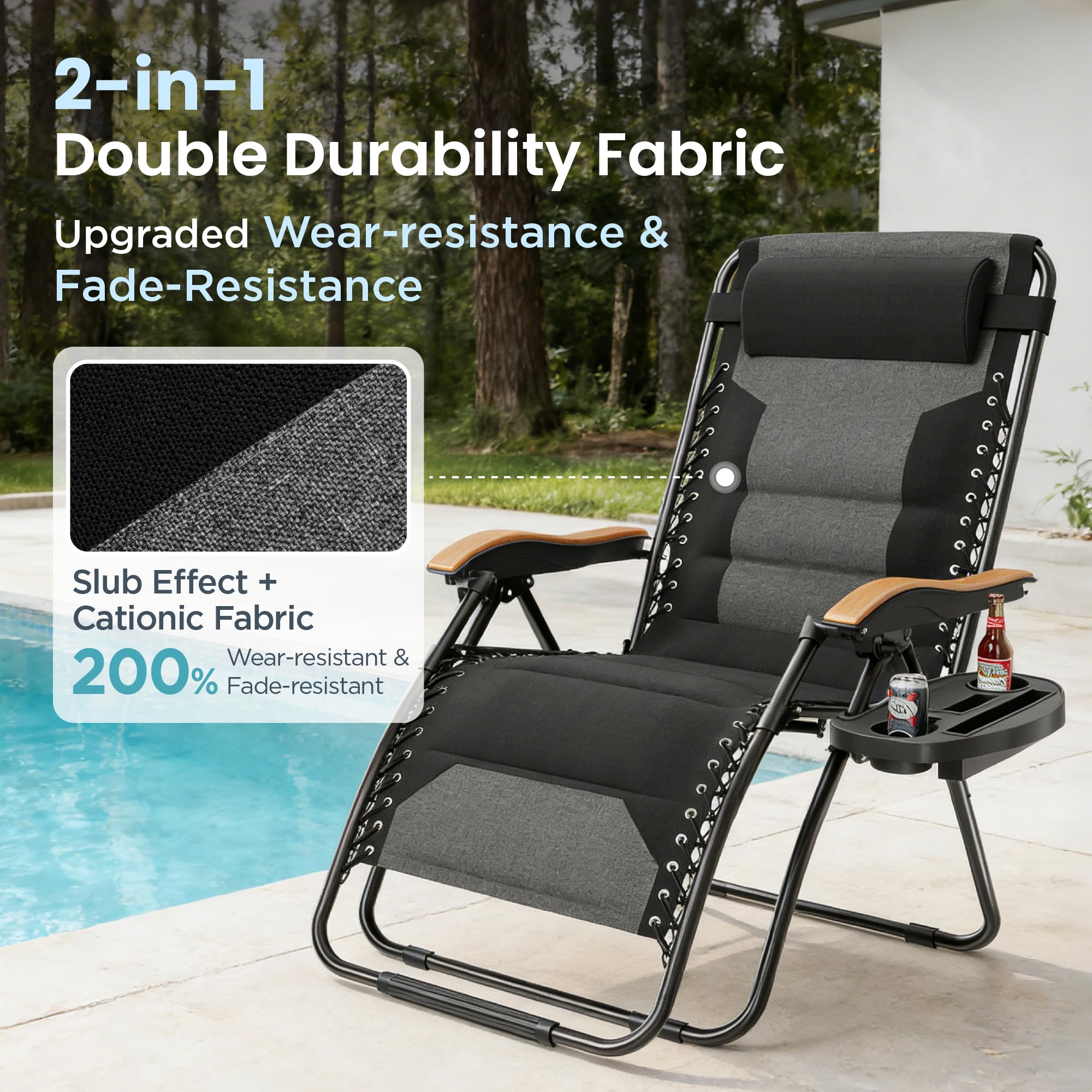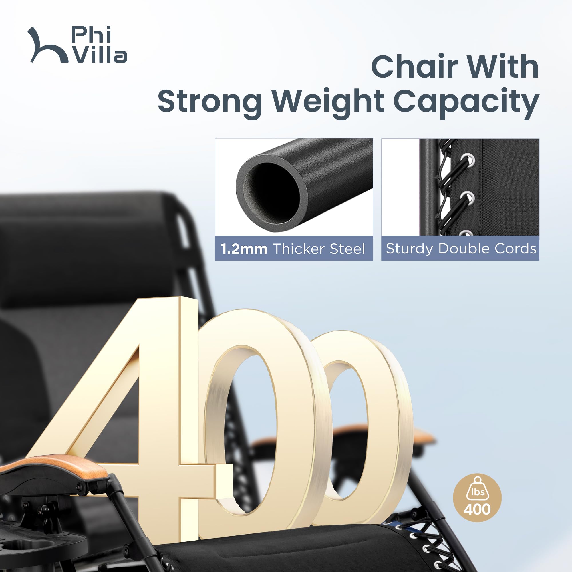 Zero Gravity Reclining Chairs: The Length of extra long chair when fully reclined is large enough for big and tall people 6'2". Strong double bungee rope and stainless steel tube frame are durable for using a long time. The maximum loading capacity is 400lbs