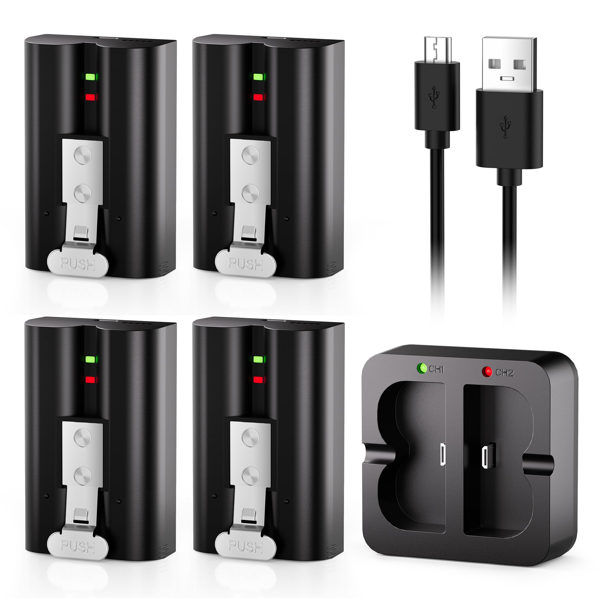 Lesaps Ring Battery, 4-Count with Charger, Black, 7200mAh