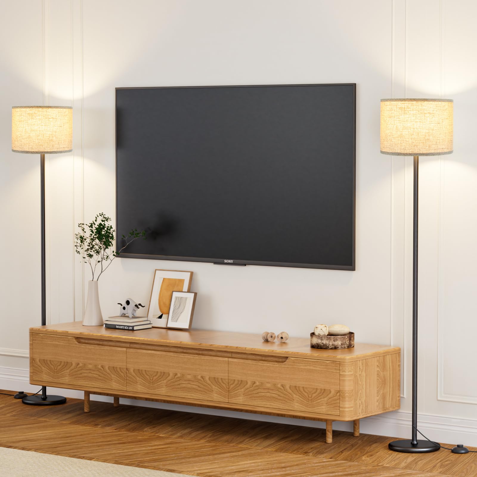 Modern Floor Lamp Set of 2: 2 PCS 60'' standing lamp adopts a simple design, accompanied by an elegant fabric lampshade. Its simple and modern design makes it a perfect fit for any area in your home or office.