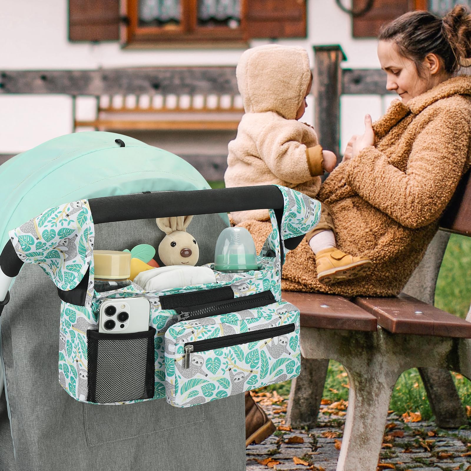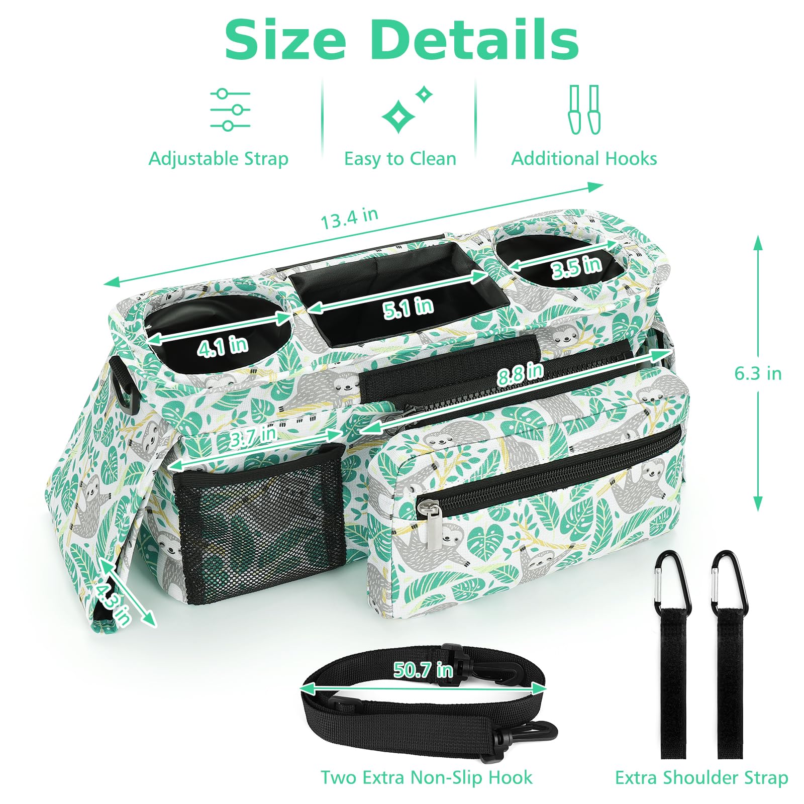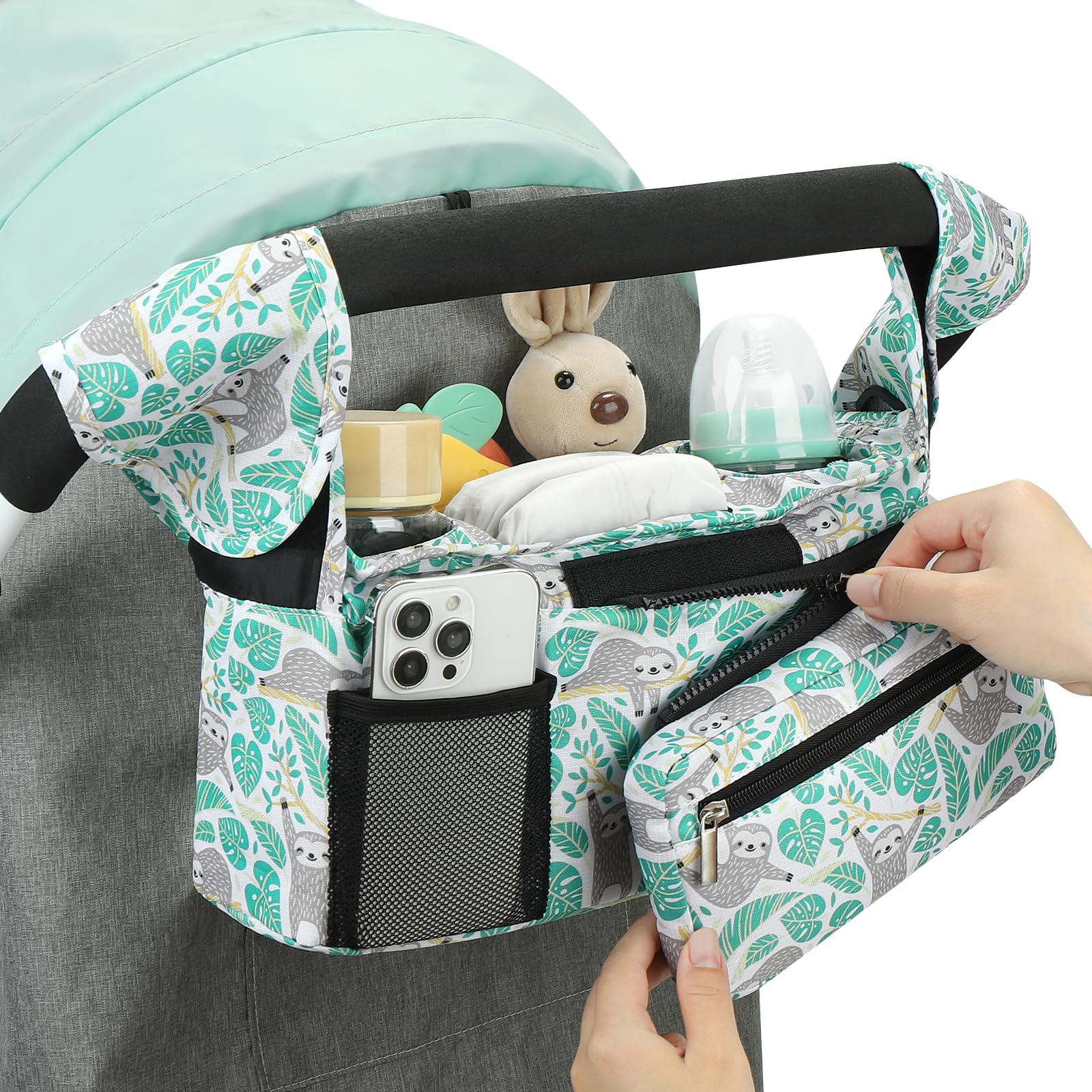 Multiple Usage Methods : It can be hung as a stroller cup holder organizer on the stroller. When you don't need to use a stroller, you can also install the accompanying strap and carry this organizer bag for easy outing.