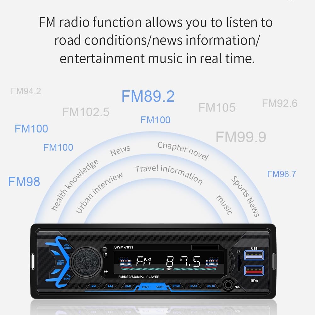 Upgrade your driving experience with our 7-inch Single Din car radio, featuring Bluetooth for hands-free calls and wireless music streaming, voice assistant integration, and a powerful 60W output. Enjoy your favorite tunes through USB, TF card, or AUX input, and tune in to FM radio with a wide frequency range of 87.5-108MHz. The stereo includes a steering wheel controller for safe, easy operation and supports subwoofer connection via RCA outputs. Additional features include customizable EQ settings, 2.1A fast charging, and power-off memory, all in a sleek, standard U.S. One-DIN design.