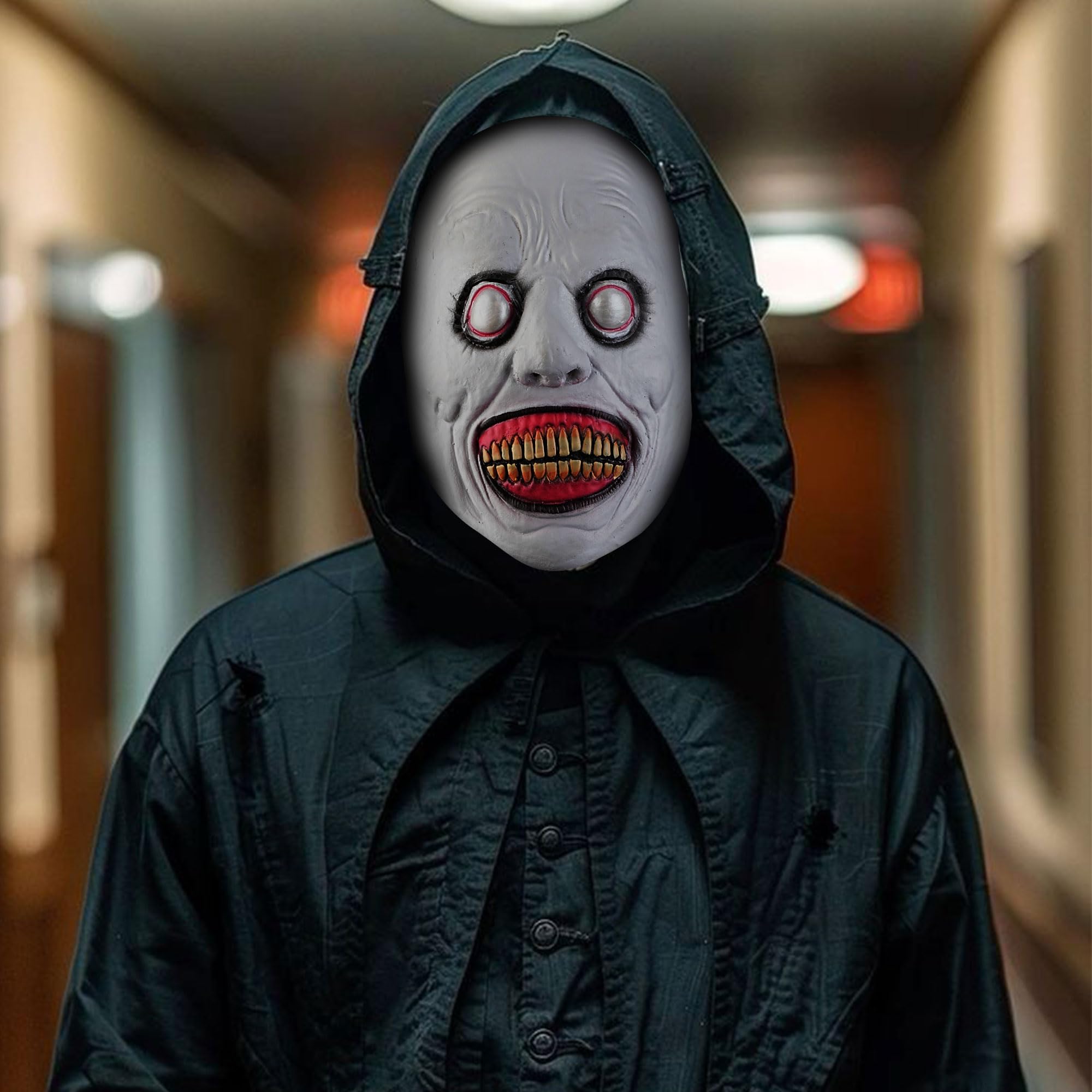 Make This Halloween Unforgettable – Scare Your Friends Senseless,Featuring a terrifying grin with blood-red teeth and hollow demonic eyes, this mask is designed to shock and awe! Perfect for Halloween parties, haunted houses, or any spooky occasion, it guarantees you'll be the scariest one in the room