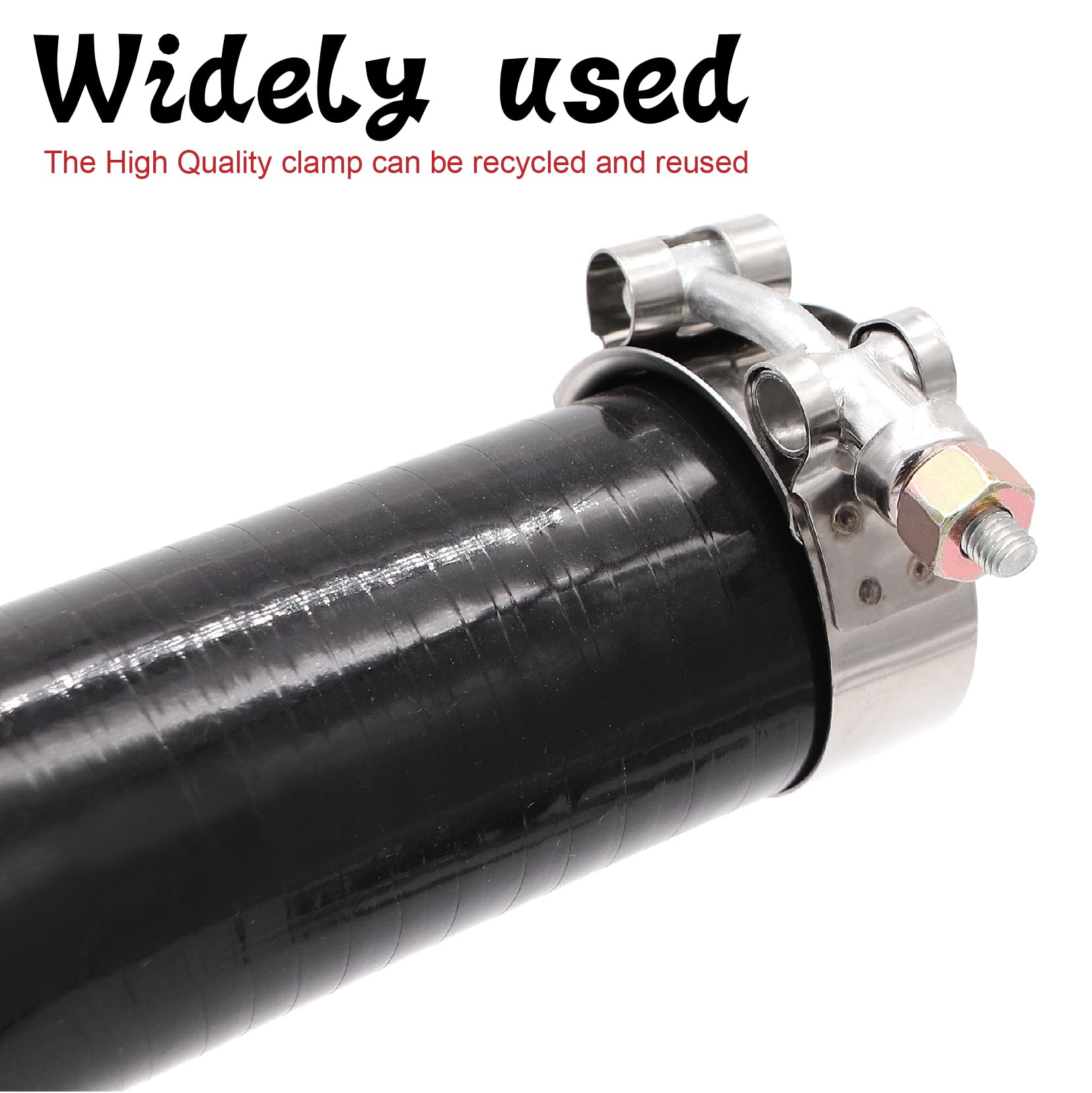The silicone hose is made of high quality silicone, many sizes to choose with 2pcs Stainless Steel T-Bolt Clamp.