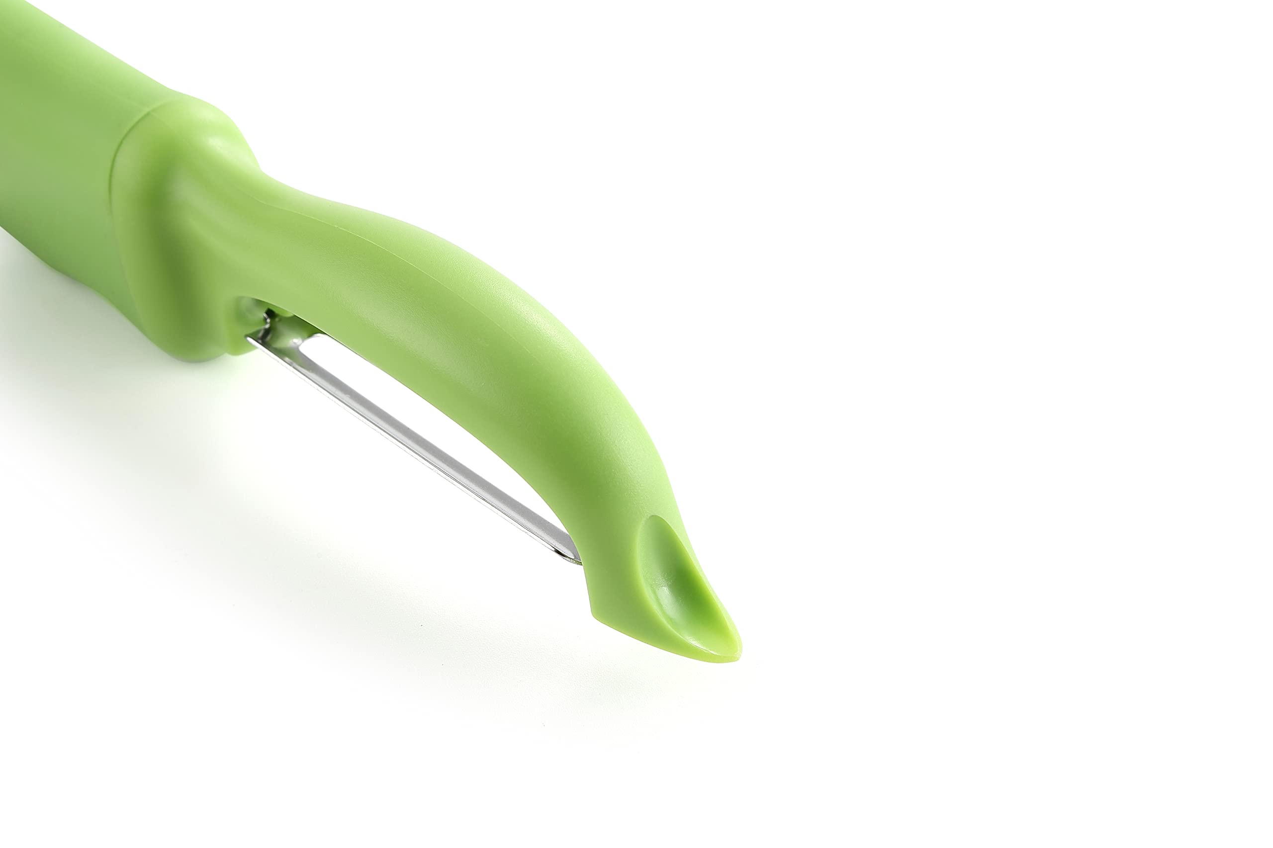 Smooth, Effortless Peeling - Dual Stainless Steel blades stay ultra sharp and swivel to glide along fruits and vegetables easily. Includes a built-in blemish remover.
