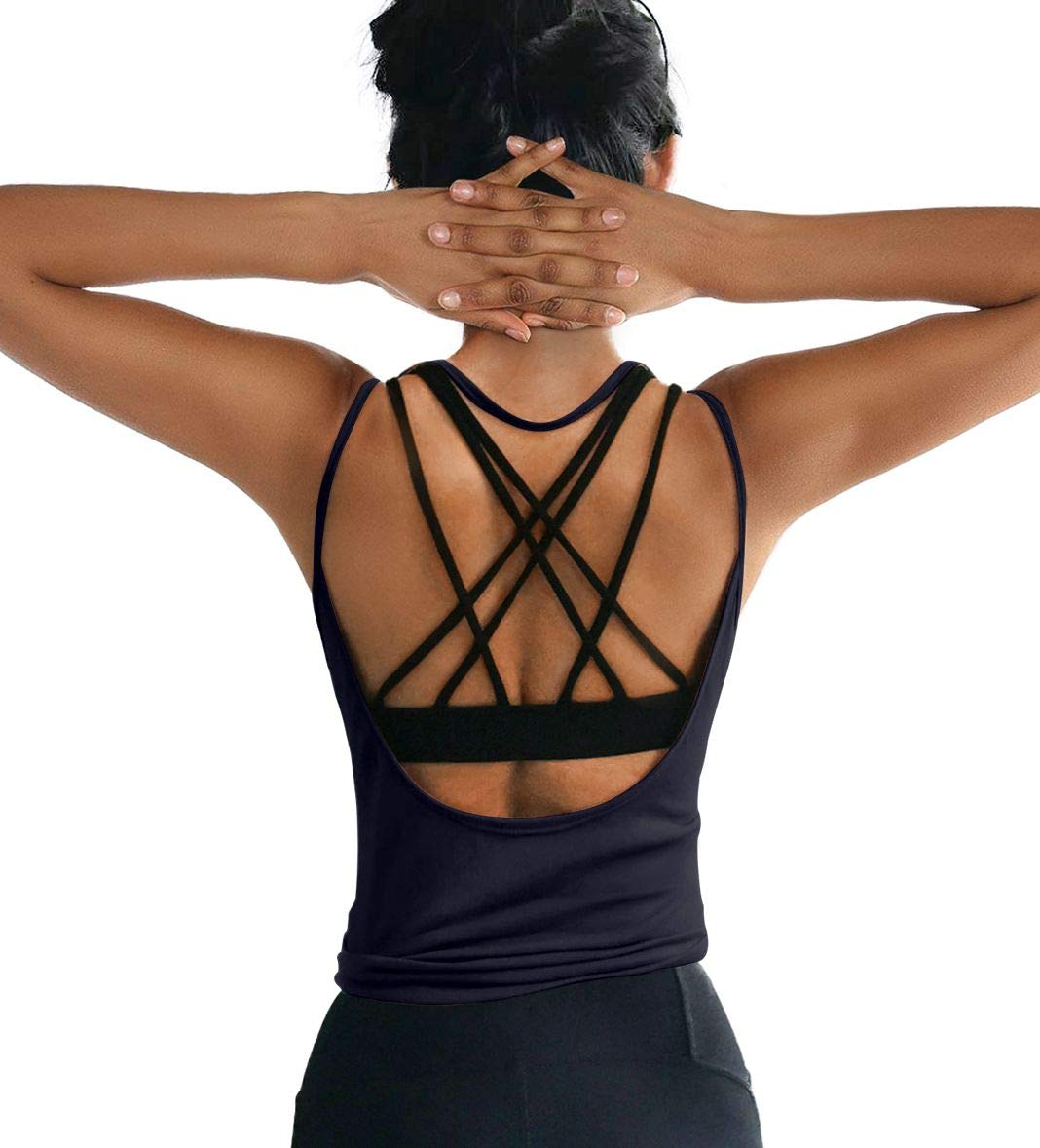 Design : This top is made of a light stretchy knit fabric. It is with unique and interesting backs, has a cooling effect on the skin, just what you want to stay cool in the summer while working out