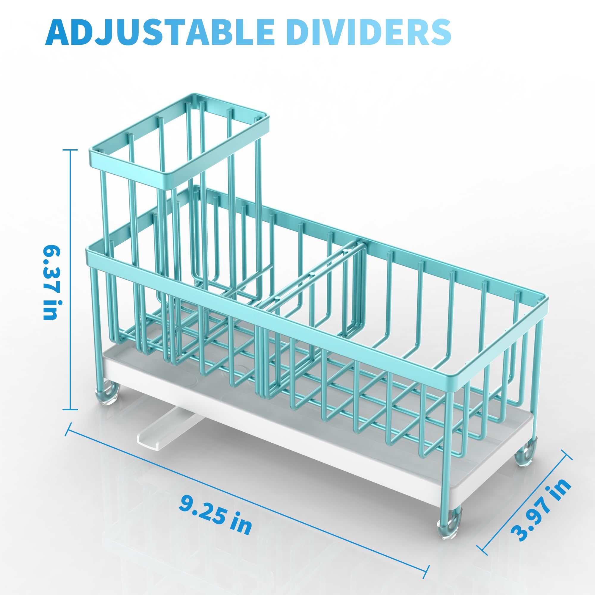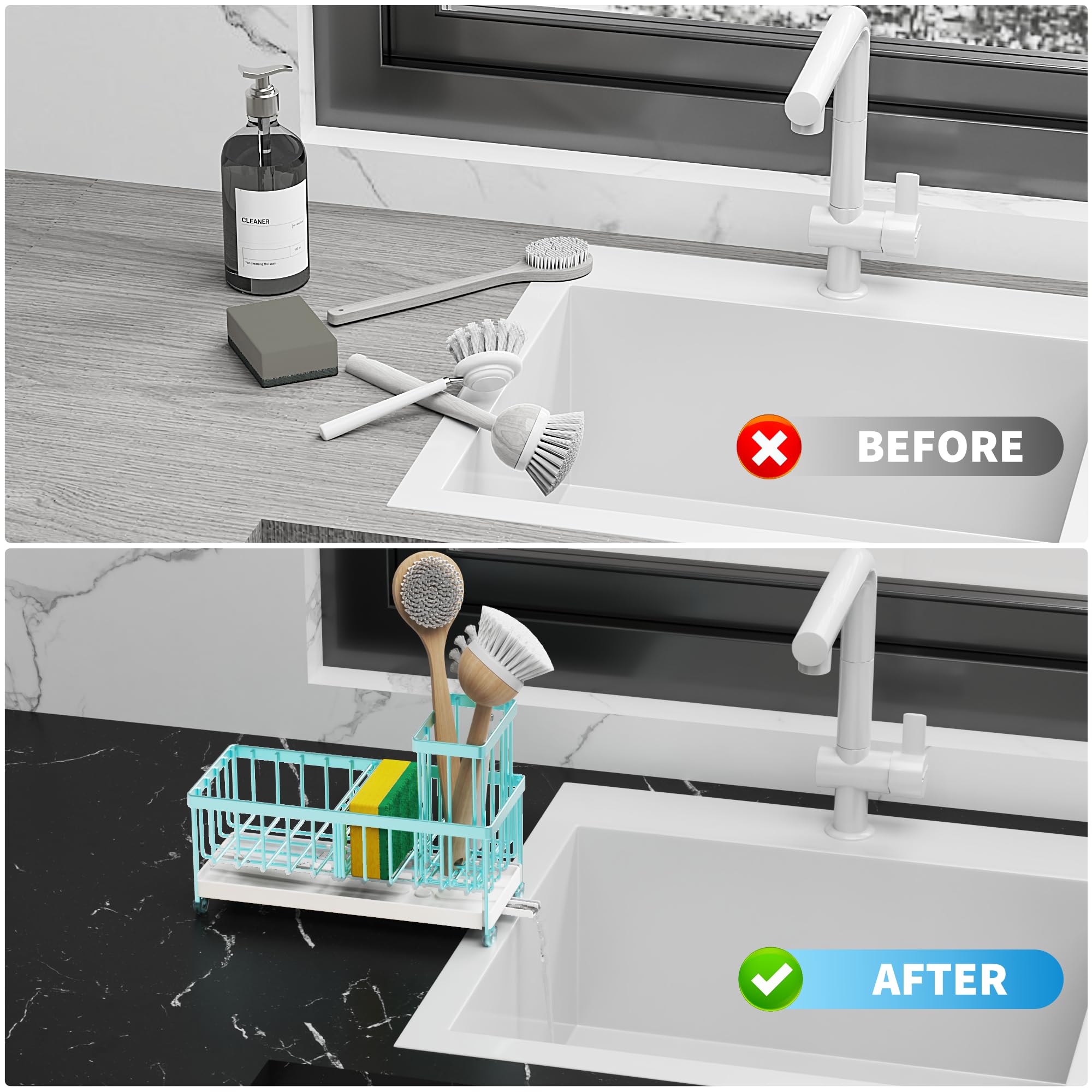 Cisily Turquoise Sponge Holder for Kitchen Sink, Sink Caddy Organizer with High Brush Holder, Kitchen Countertop Organizers and Storage Essentials, Rustproof 304 Stainless Steel, Soap Dispenser Organize