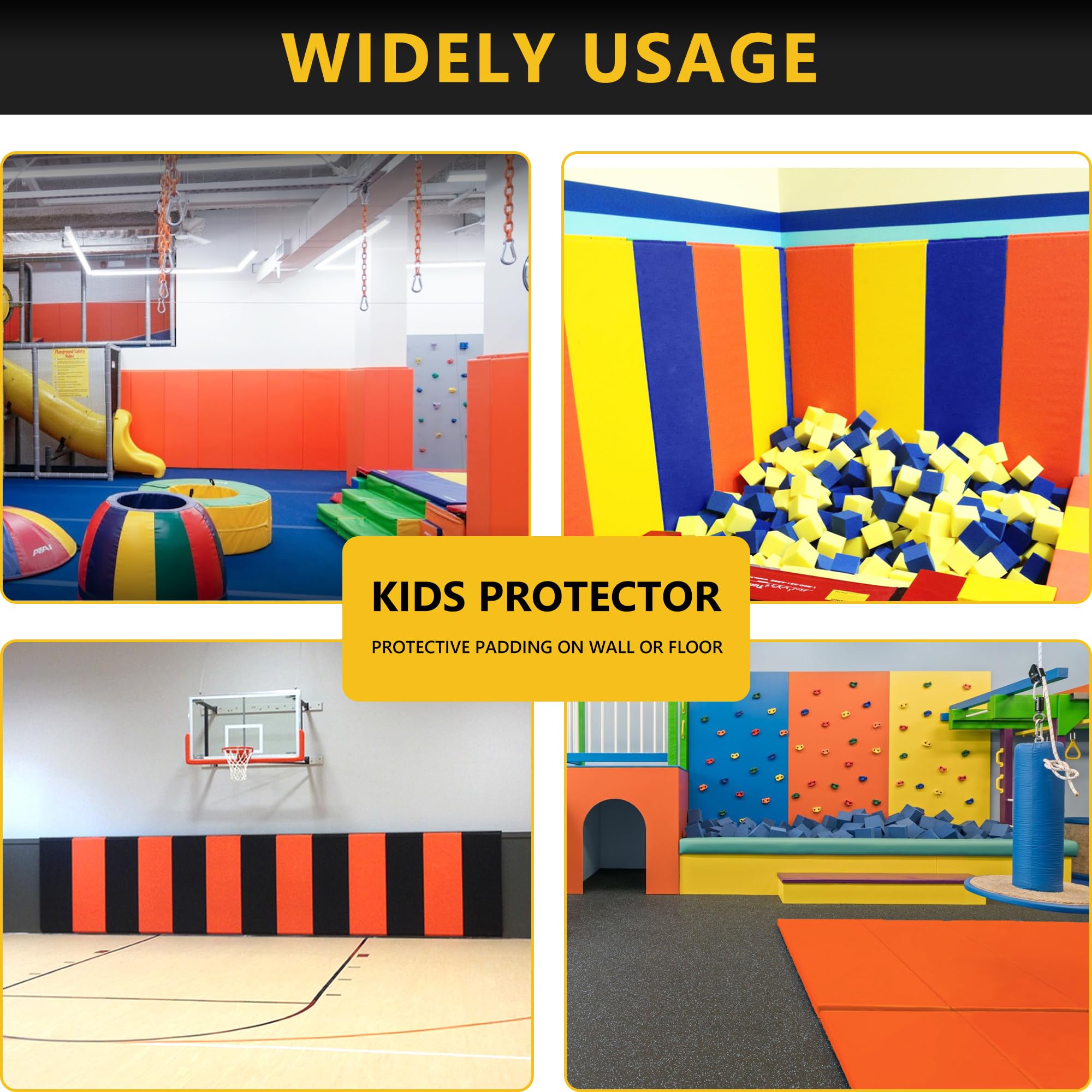 This protective wall pad is perfect for basketball courts, home gyms, garages, taekwondo, boxing gym, playground, kids fitness centel, early education, kindergarten, martial arts studios, and more. This wall protector provides ultimate protection against wall impact, makes any facility safe for kids, students, and athletes, and adds safety for aggressive play.