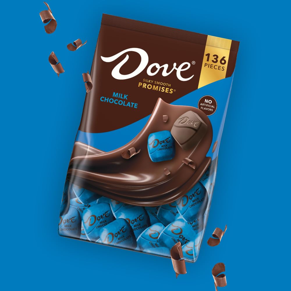 Contains one (1) 38.09-ounce, 136-piece bag of DOVE PROMISES Milk Chocolate Candy Assortment