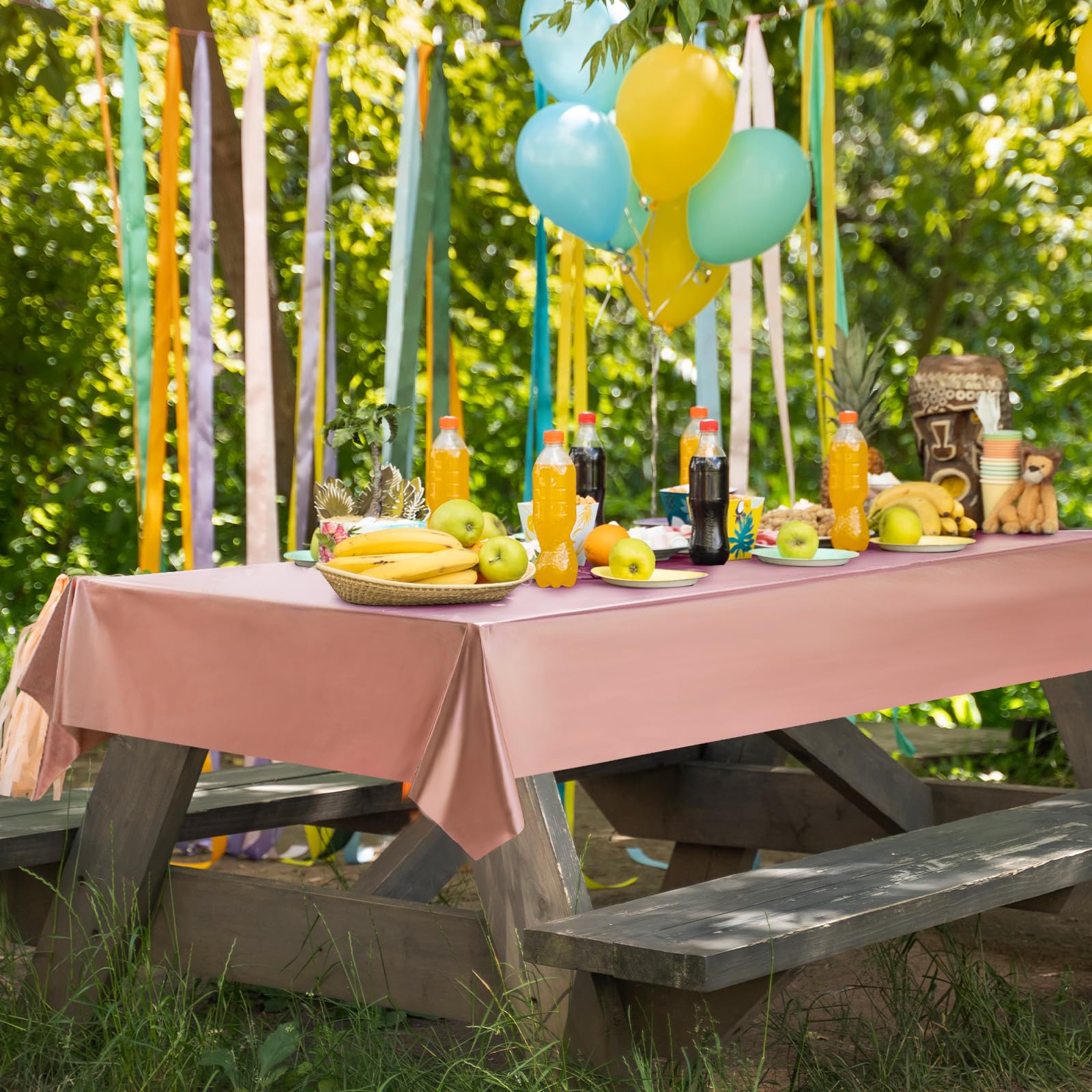 Captivating Metallic Elegance Enhance your party tables with the captivating allure of the Metallic Matte Plastic Tablecloth. This exquisite tablecloth features a stunning metallic texture that adds a touch of elegance and sophistication to any occasion, creating a memorable atmosphere that will leave a lasting impression on your guests. Dazzling and Waterproof This tablecloth boasts a mesmerizing matte metallic sheen that brings a subtle yet glamorous glow to your party decor. The waterproof plastic material ensures easy cleanup, allowing you to enjoy the festivities without worrying about spills or stains. Easy to Clean and Maintain Spend less time on cleanup and more time enjoying the celebration. Our Tablecloth is designed for convenience, simply wipe it clean with a damp cloth to remove any dirt or residue, making it a hassle-free choice for your party needs. Versatile Decoration Whether it's a formal dinner party, a festive birthday celebration, or a themed event, this tablecloth is a versatile choice that complements various decor styles. Its metallic texture effortlessly enhances the visual appeal of your table setup. Perfect Size and Material Measuring 40 x 108 inches, this tablecloth provides ample coverage for most standard-sized tables. It is made from high-quality plastic with a matte metallic finish, ensuring durability and a luxurious feel that adds a touch of sophistication to your party ambiance. Create Lasting Memories Impress your guests with the captivating shimmer and timeless elegance of the Metallic Matte Plastic Tablecloth. Its luxurious metallic texture will create a memorable atmosphere that sets the stage for unforgettable moments, making your party truly special. Specification: Color: Rose Gold Size: 40x108" Material: Plastic Package Includes: 1 Pieces Metallic Matte Plastic Tablecloth