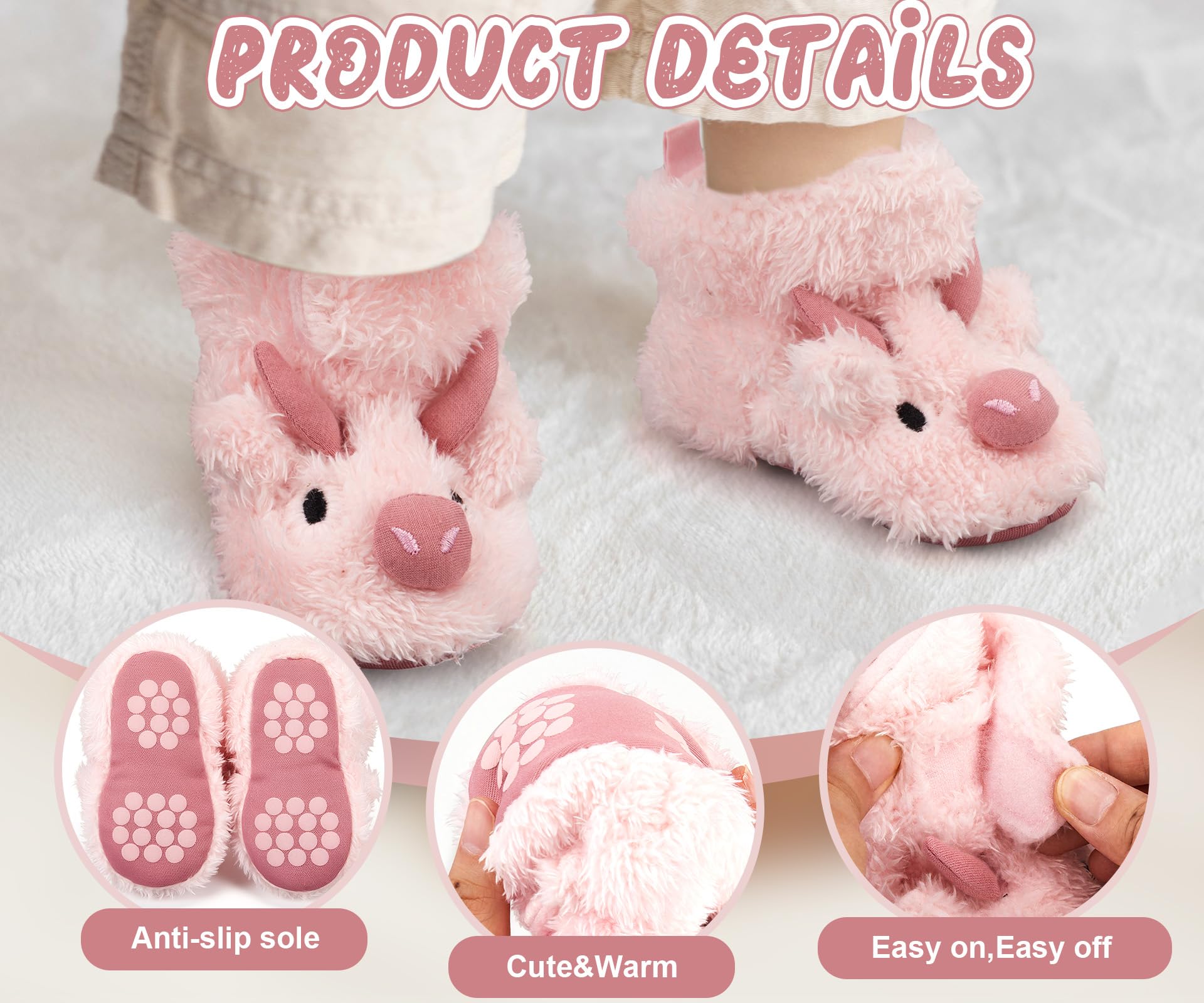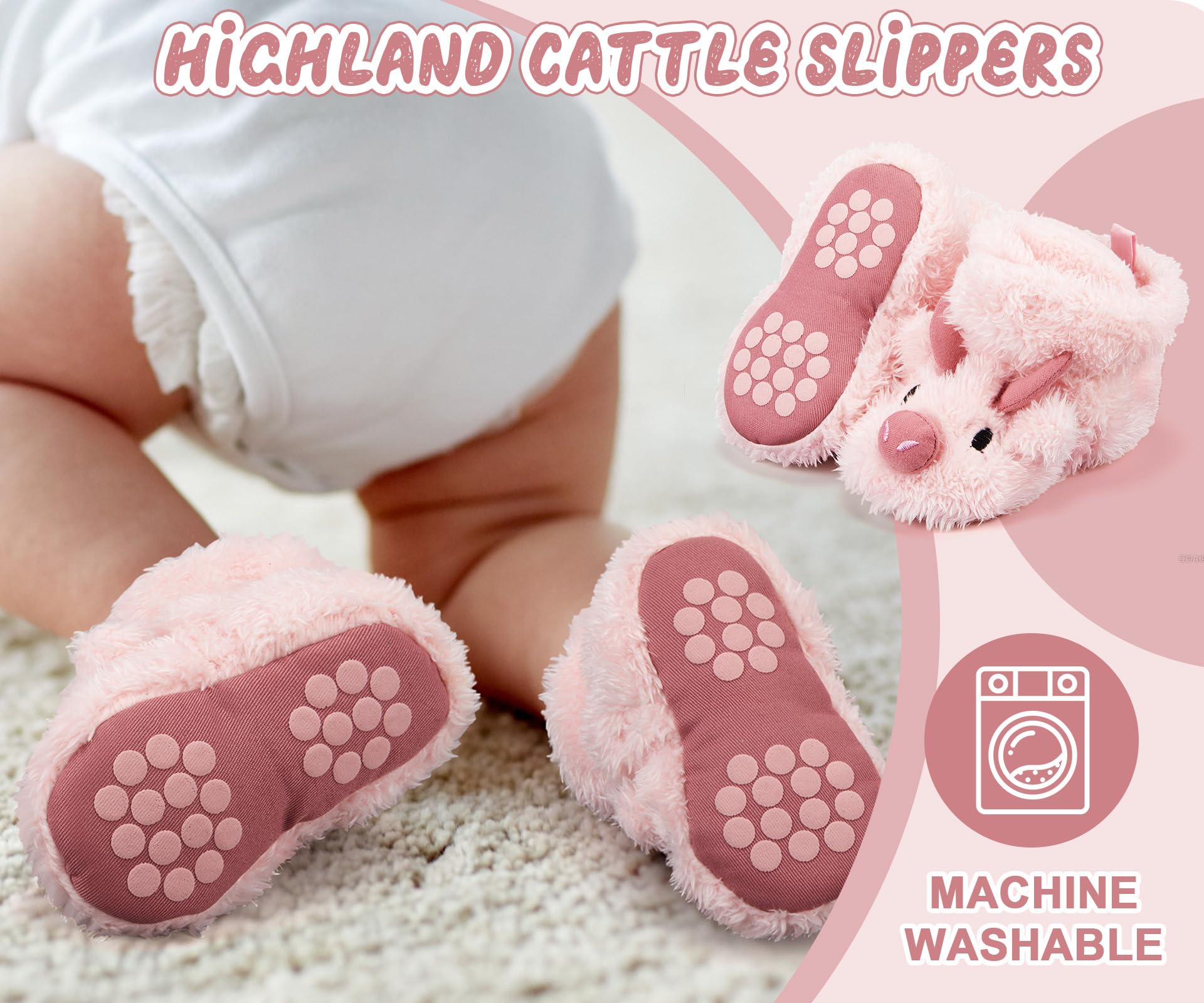 Warm Design: our Highland Cow design slippers keep your baby's feet warm all winter long; Featuring a non-slip and durable sole, these slippers are suitable for indoor and outdoor adventures
