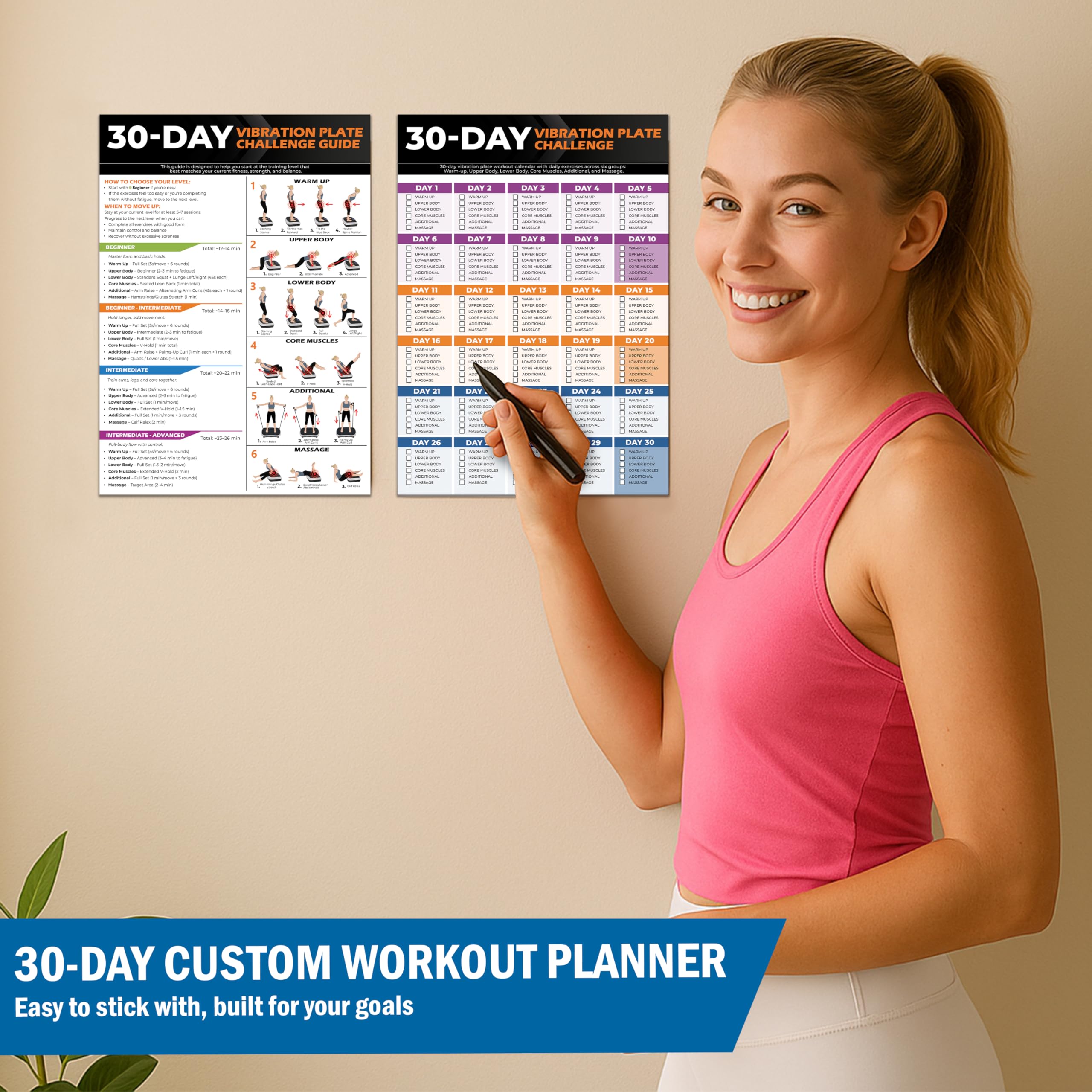 📌 Make Your Vibration Plate Work for You – Maximize your machine’s benefits for weight loss, toning, muscle gain, recovery, relaxation, and better circulation. Works with all vibration plates, making every session simple, safe, and effective at home.