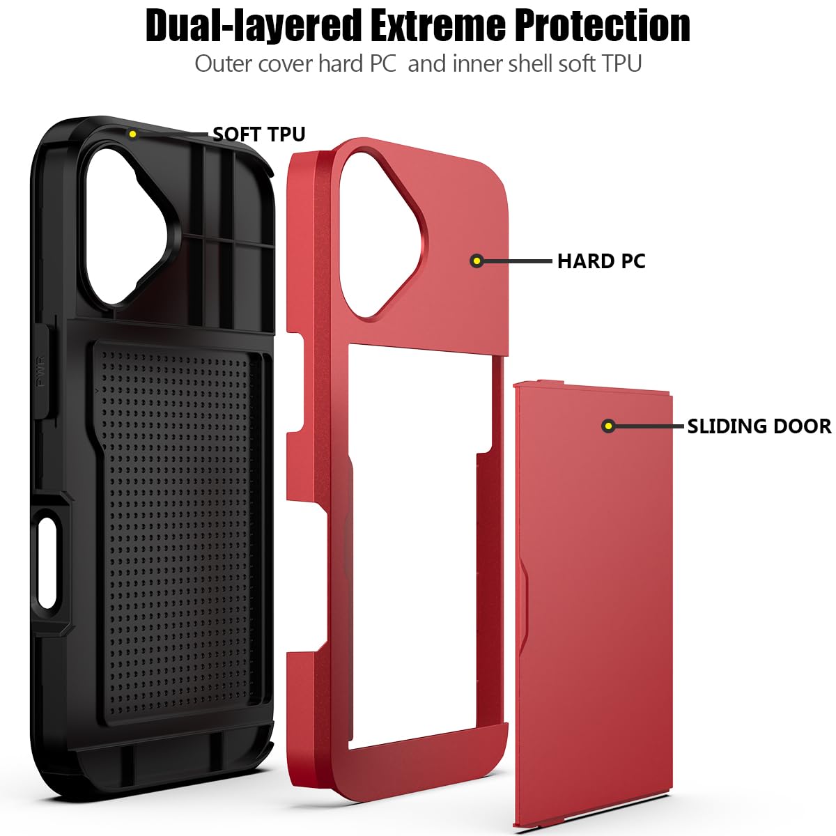 Dual-layered Extreme Protection: Outer cover hard PC and inner shell soft TPU,deflects shocks and absorbs impacts.Lifted edges at camera and screen of the case,defend your device from daily adventures, you can keep your phone face down as well.