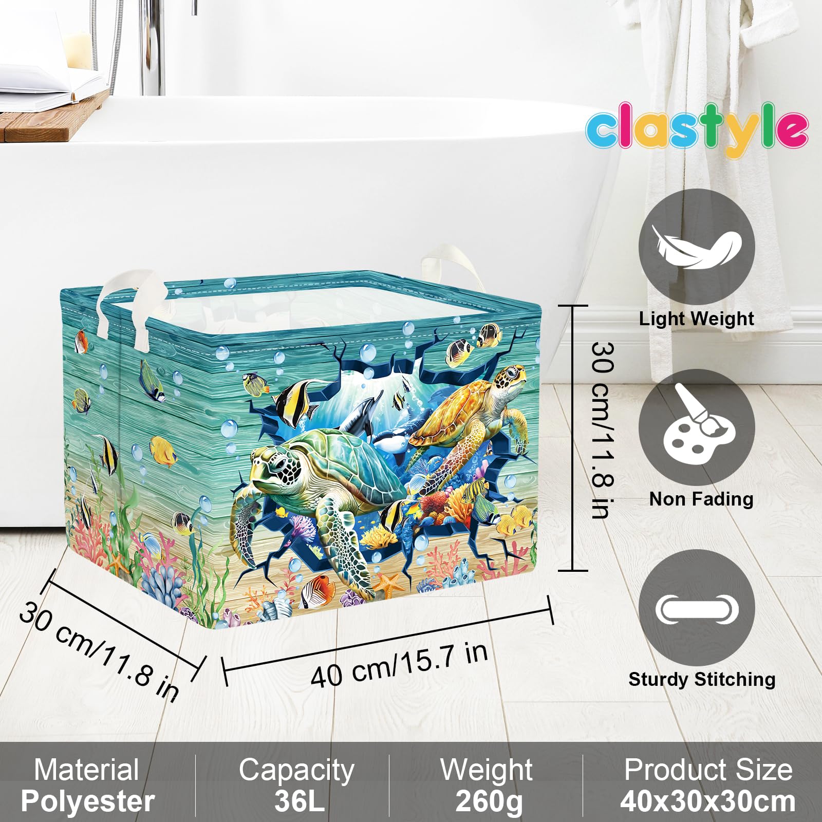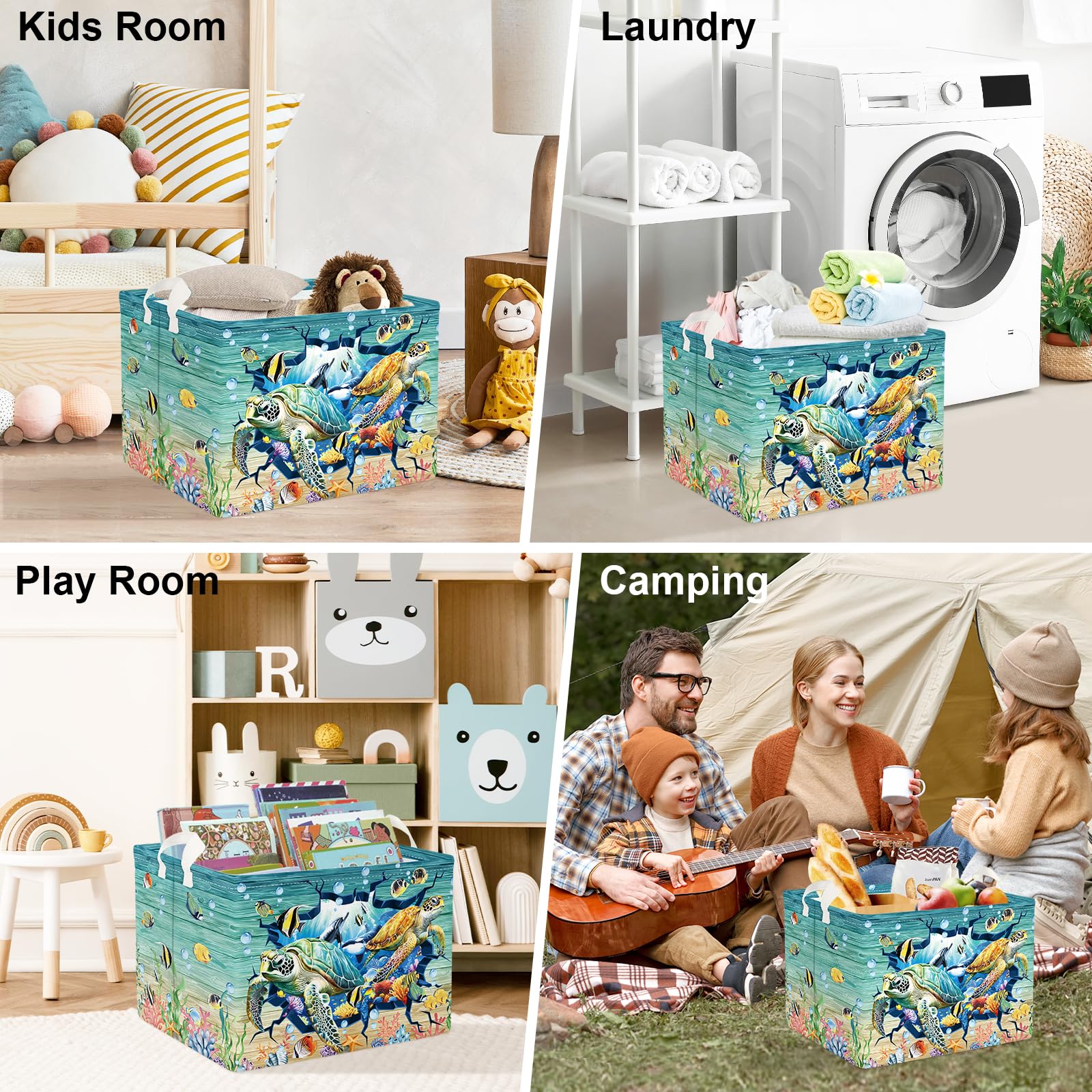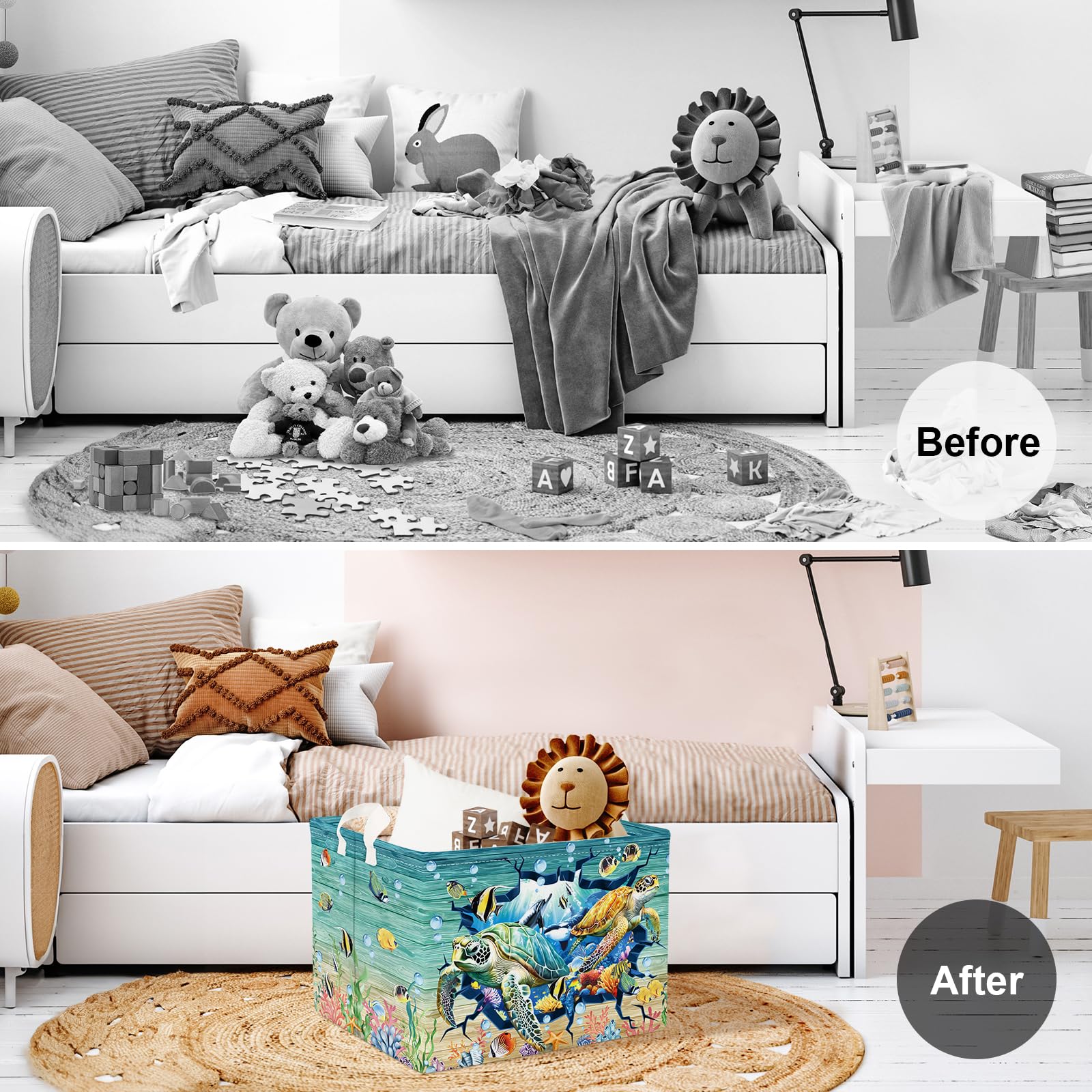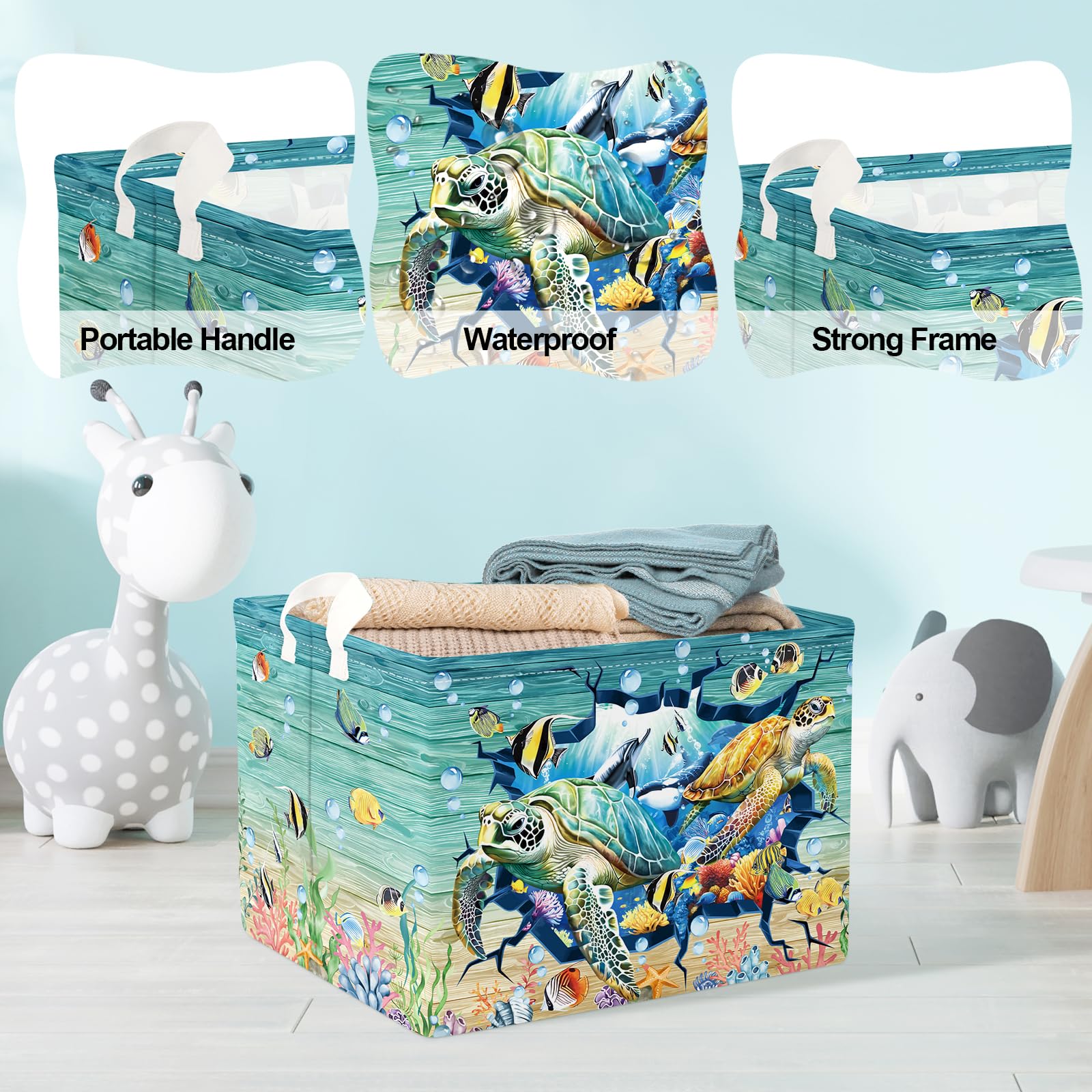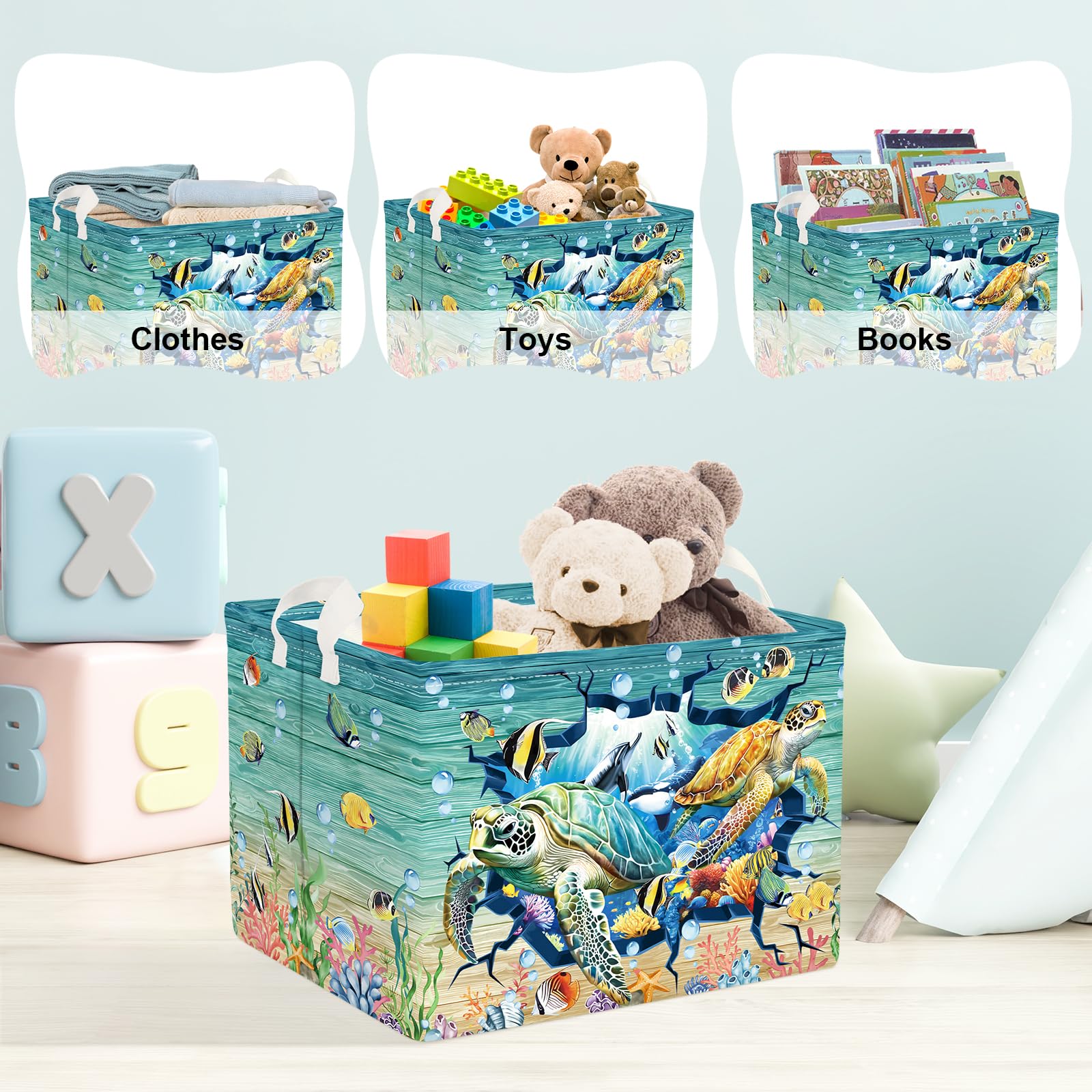 Marine Animal Baby Gift Basket: Strewn with starfish shells and conchs under the sea, long seaweed, turtles and fish playing in the sea, 3D sea turtles add fun to your children's room décor