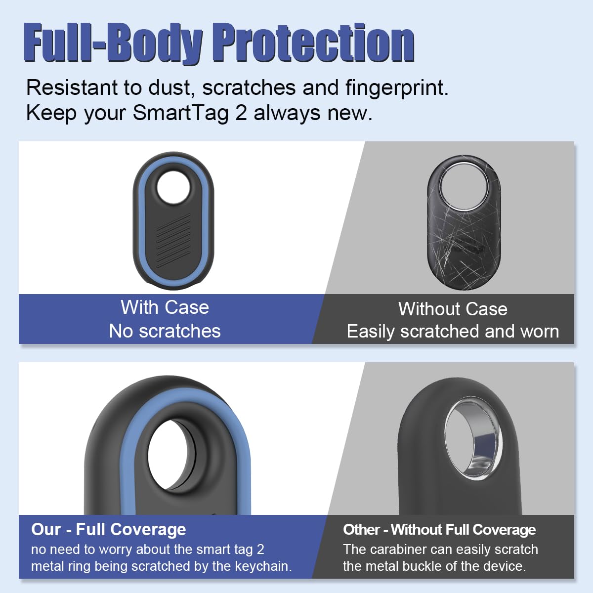 【All Round Protection】The full wrap-around design can protects the entire Galaxy SmartTag2 from dust, scratch and external impacts.It also prevent SmartTag 2 from popping up, provides secure protection for your SmartTag 2 no matter what kind of activity is done while wearing it