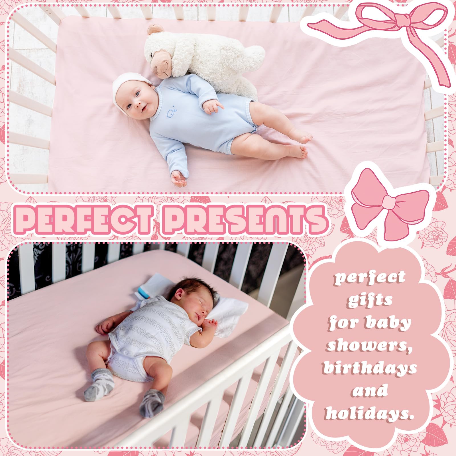 Features: Ideal gift for moms: The baby girl crib sheet would make the ideal gift for a nursery or baby shower. Moms will appreciate the thoughtfulness and practicality of your gift, given the need for multiple crib sheets in a baby's first years. Complementing colors: These Crib sheets demand attention with their attractive colors that are as shown in the picture. They offer your nursery a fresh and vibrant look with their bright, lively hues, actively contributing to the room's overall decor. Specifications: Main material: microfiber Color: as shown in the picture Size: fit a standard size crib or crib mattress of 52'' x 28'' Package includes: 4 x Crib sheets Notes: Manual measurement, please allow slight errors on size. The color may exist a slight difference due to different screen displays.