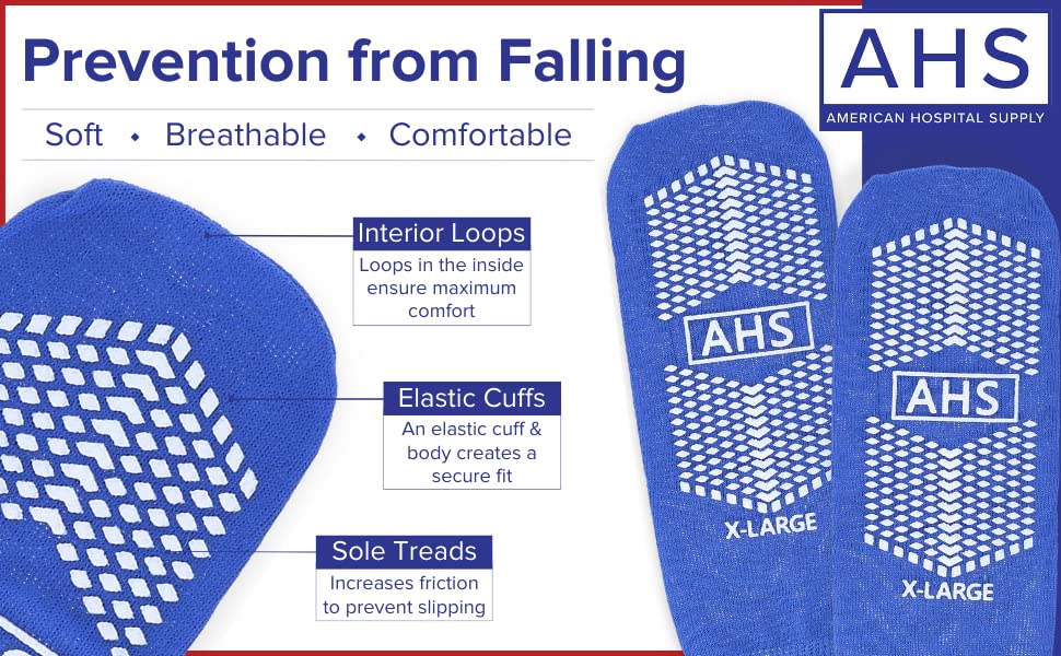 Product Specifications: The Hospital Slipper Socks are available in an X-Large size. They are blue in color and come in a pack of 6 pairs.