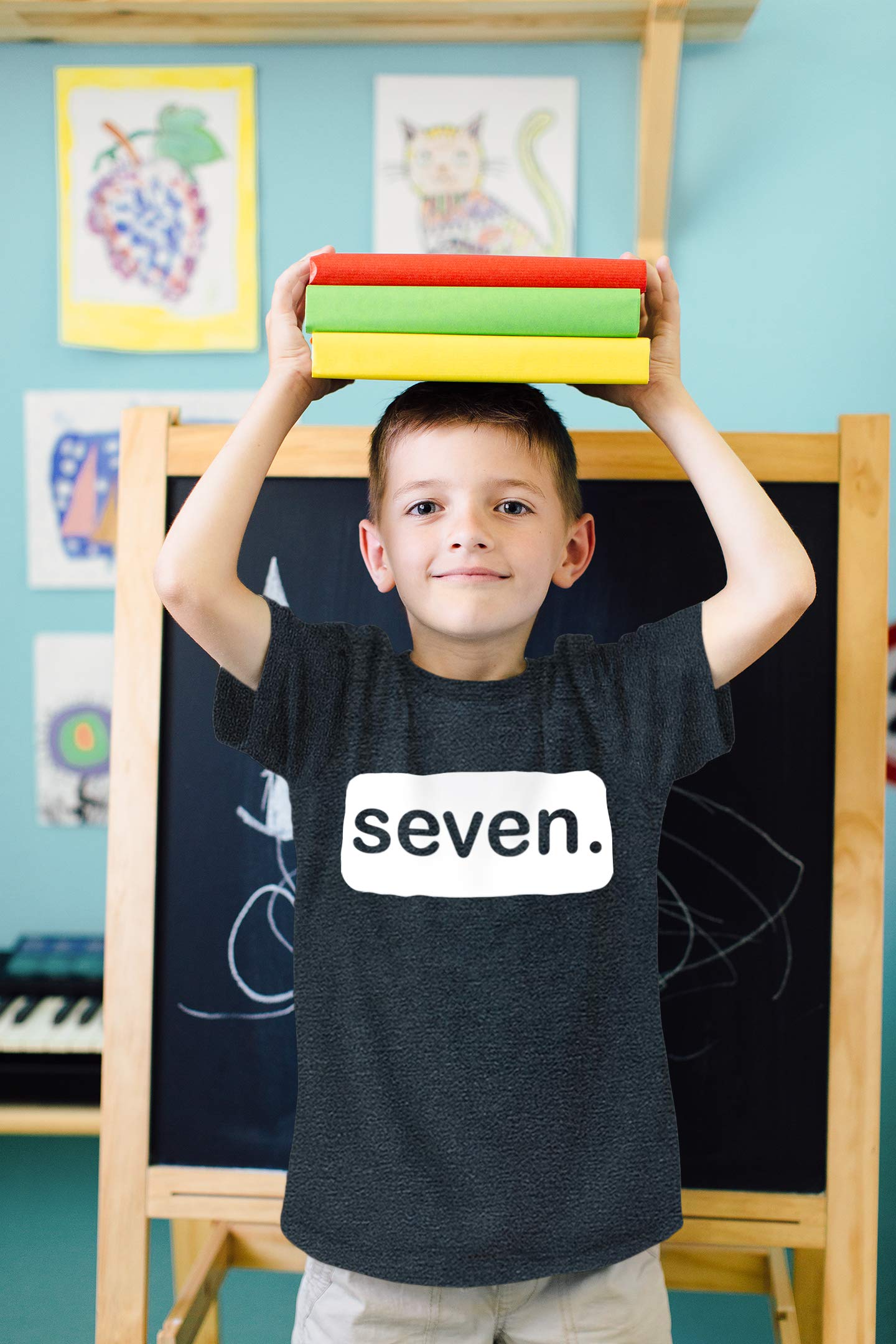 The seven year old boy birthday gift in Charcoal Black is made from 60 Percent Cotton, 40 Percent Polyester material. The design on seven shirt is made with high quality material. All our products are machine washable. The material is soft and washes really well.