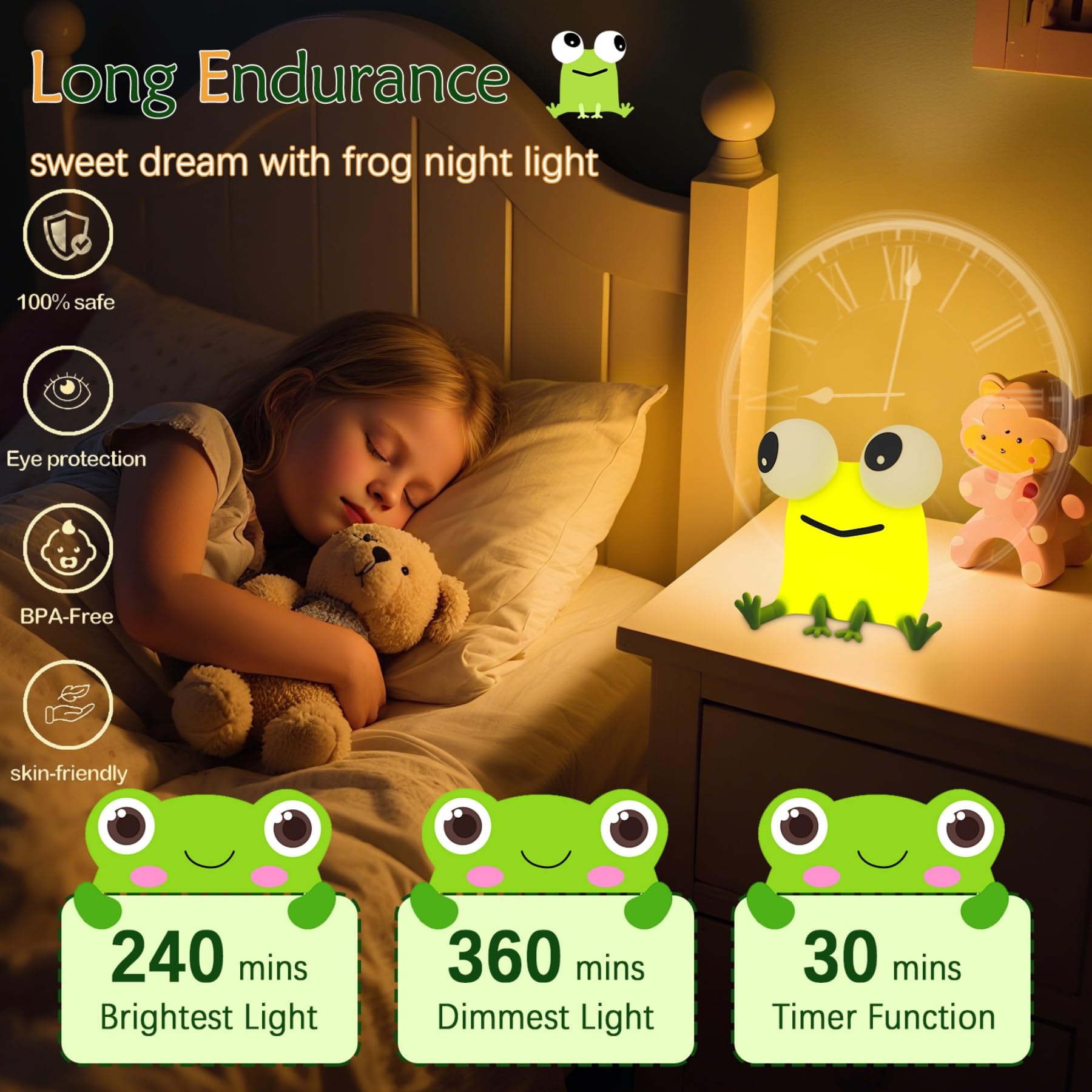 Multi-functional Led Lamp: The light up frog provides a soft, gentle glow that can help comfort children at night and alleviate fear of the dark, soothe kids to sleep. In addition, this frog lamp can also help the elderly go to the bathroom at night or relieve stress for busy young people. Meanwhile, it can serve as cool, weird and cute decor for desks, bookshelves, bedrooms, or college dorm.