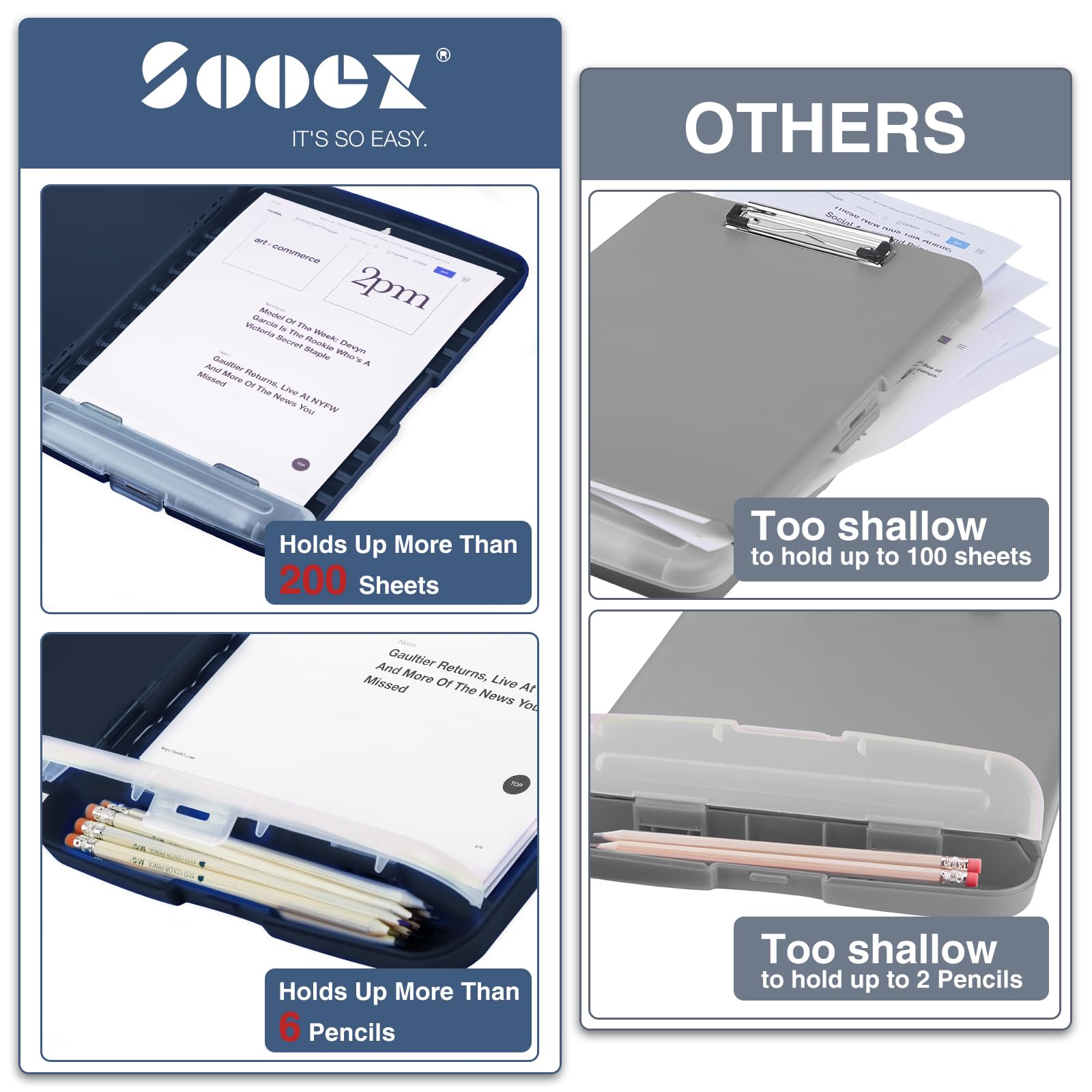 High Capacity: Equipped with both a paper storage component that holds twice as much paper as other clipboards and a built-in pencil case. The high-capacity medical clipboard can securely hold up more than 200 letter-sized documents, and up to 6 pencils.