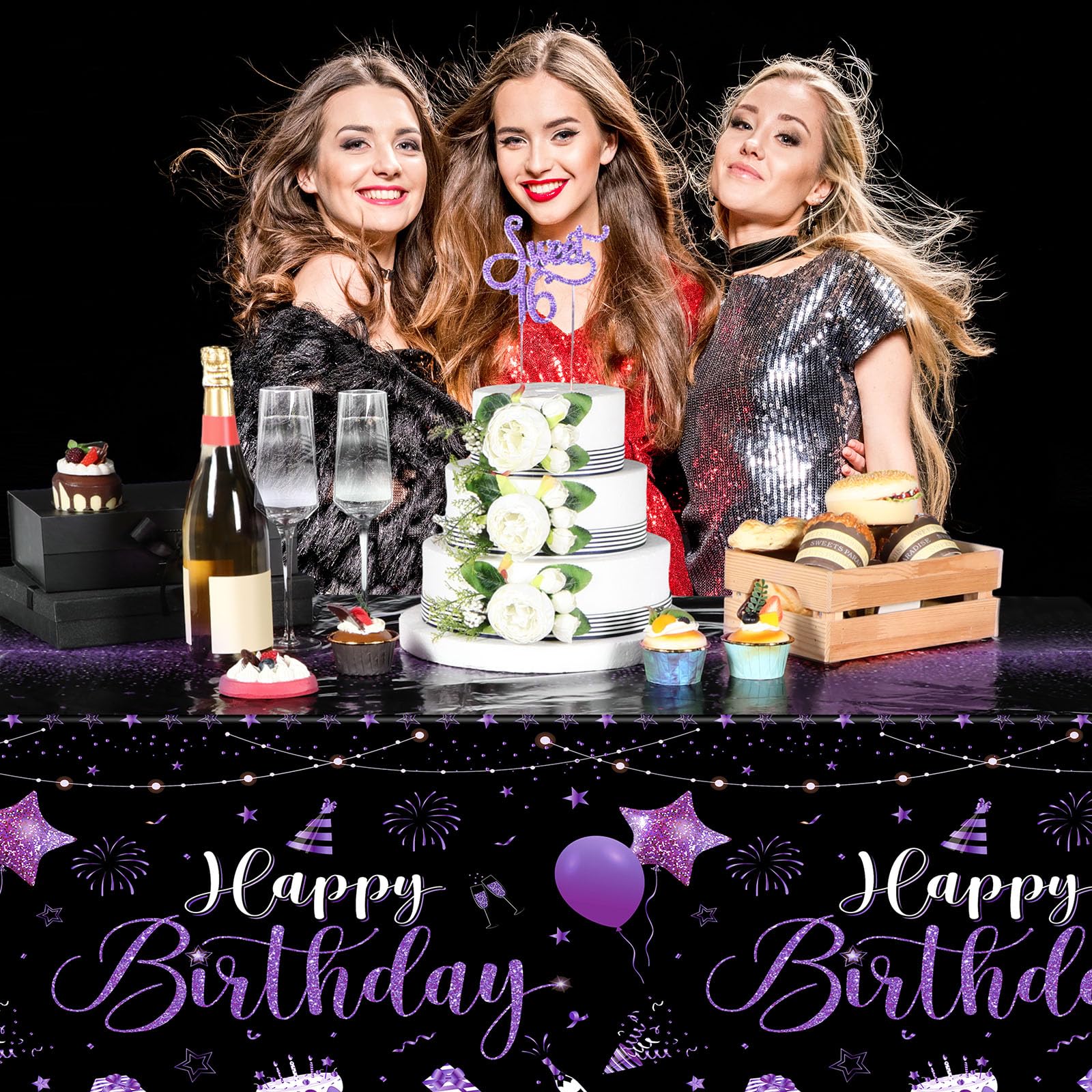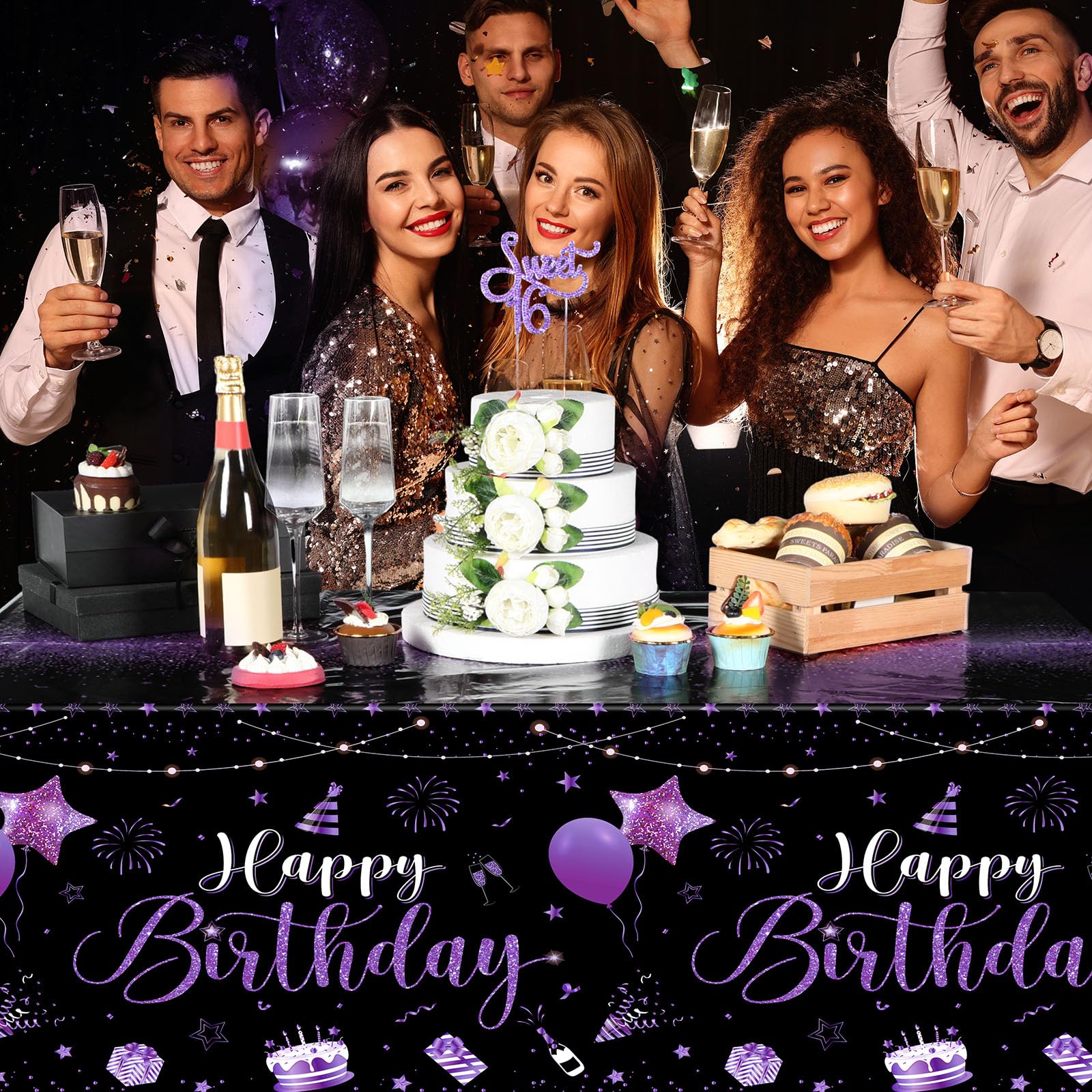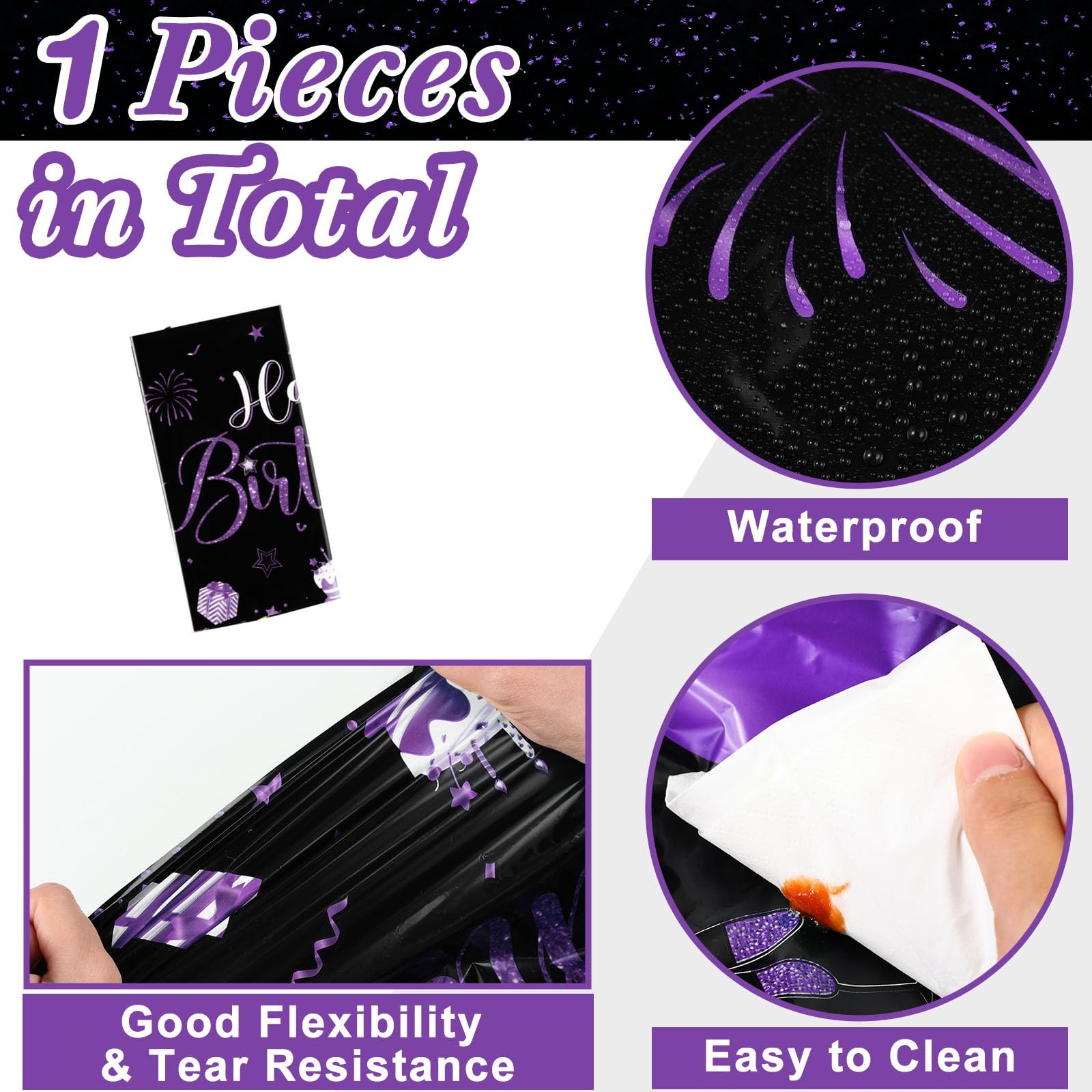 What You Will Receive: the package contains 1 piece of happy birthday tablecloths in classic black and purple colors, enough to meet your using and replacing needs for holding a birthday party