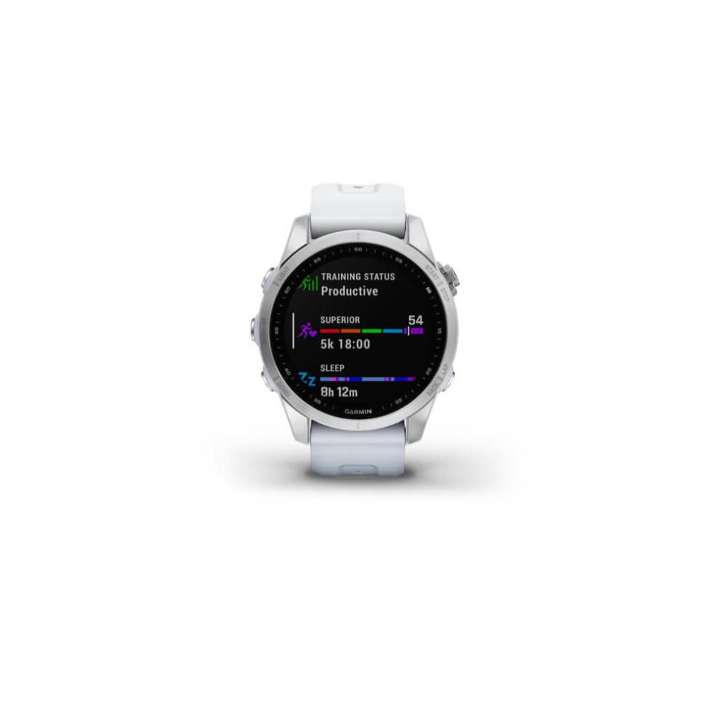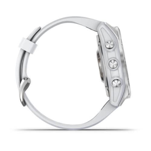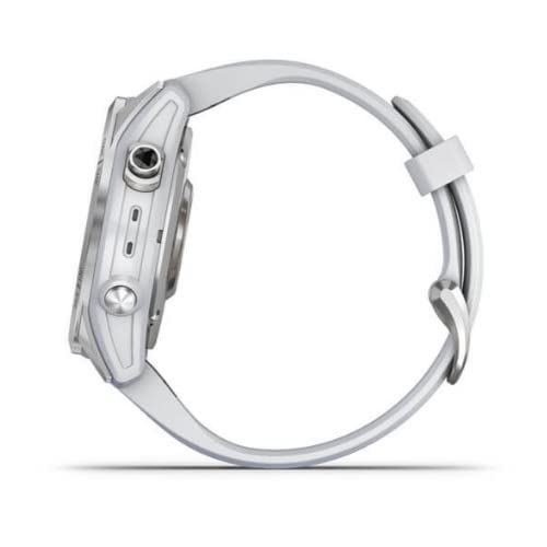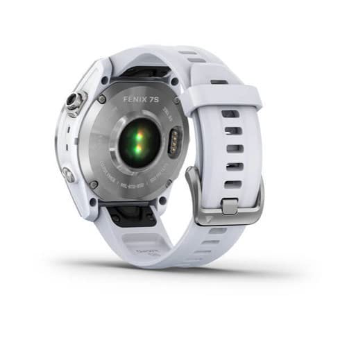 There are 7 days in a week. And the smaller-sized fēnix® 7S multisport GPS watch is built to go strong for all of them. Meet any athletic or outdoor challenge with cutting-edge training features, sports apps and health monitoring. Styled for smaller-sized wrists, the watch’s fresh new design adds a new touchscreen interface to access selections along with the watch’s trusted button controls. Gain performance insights and metrics that help you manage your exertion and build stamina. Optimize recovery with 24/7 health and wellness monitoring of heart rate, respiration, stress, sleep and more (this device is intended to give an estimation of your activity and metrics; it is not a medical device). GPS and outdoor navigation sensors guide your outings off the beaten path. And to complement your tamer days, connected features include smart notifications (when connected to a compatible smartphone), music storage and Garmin Pay™ contactless payments in supported countries and payment networks