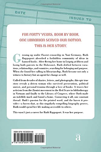 The inspiring true story of an indomitable librarian’s journey from Nazi Germany to Seattle to Vietnam―all for the love of books. Growing up under Fascist censorship in Nazi Germany, Ruth Rappaport absorbed a forbidden community of ideas in banned books. After fleeing her home in Leipzig at fifteen and losing both parents to the Holocaust, Ruth drifted between vocations, relationships, and countries, searching for belonging and purpose. When she found her calling in librarianship, Ruth became not only a witness to history but an agent for change as well. Culled from decades of diaries, letters, and photographs, this epic true story reveals a driven woman who survived persecution, political unrest, and personal trauma through a love of books. It traces her activism from the Zionist movement to the Red Scare to bibliotherapy in Vietnam and finally to the Library of Congress, where Ruth made an indelible mark and found a home. Connecting it all, one constant thread: Ruth’s passion for the printed word, and the haven it provides―a haven that, as this singularly compelling biography proves, Ruth would spend her life making accessible to others. This wasn’t just a career for Ruth Rappaport. It was her purpose.
