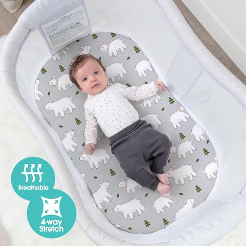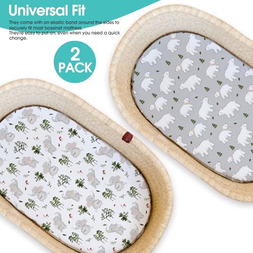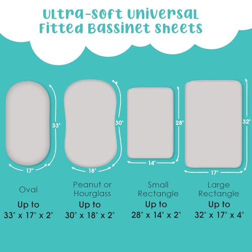 UNIVERSAL FIT BASSINET SHEETS FOR ALL CRADLE MATTRESSES:Our bassinet sheets are designed to fit all bassinet mattress pads, including oval, round, rectangle, and hourglass shapes. Whether you’re using a bedside sleeper, Moses basket, or standard bassinet, these bassinet sheets feature stretchy elastic edges for a snug, secure fit that won’t slip or bunch.