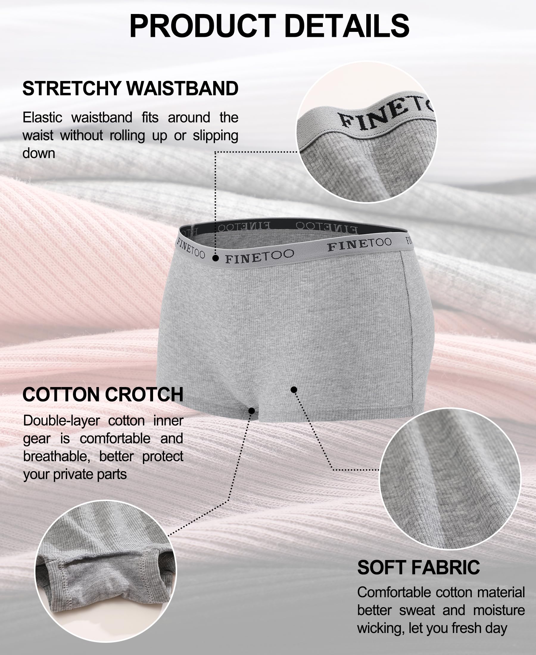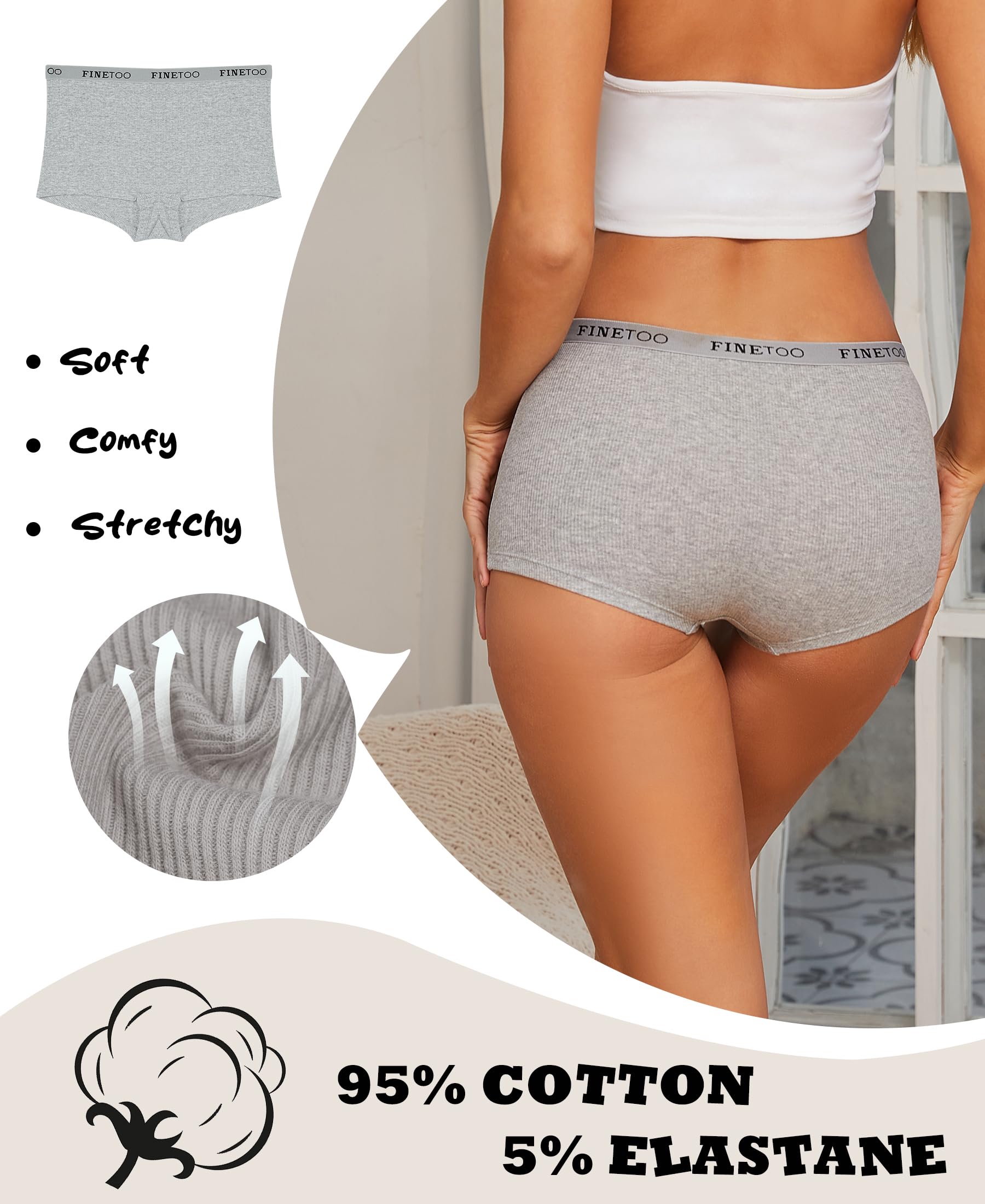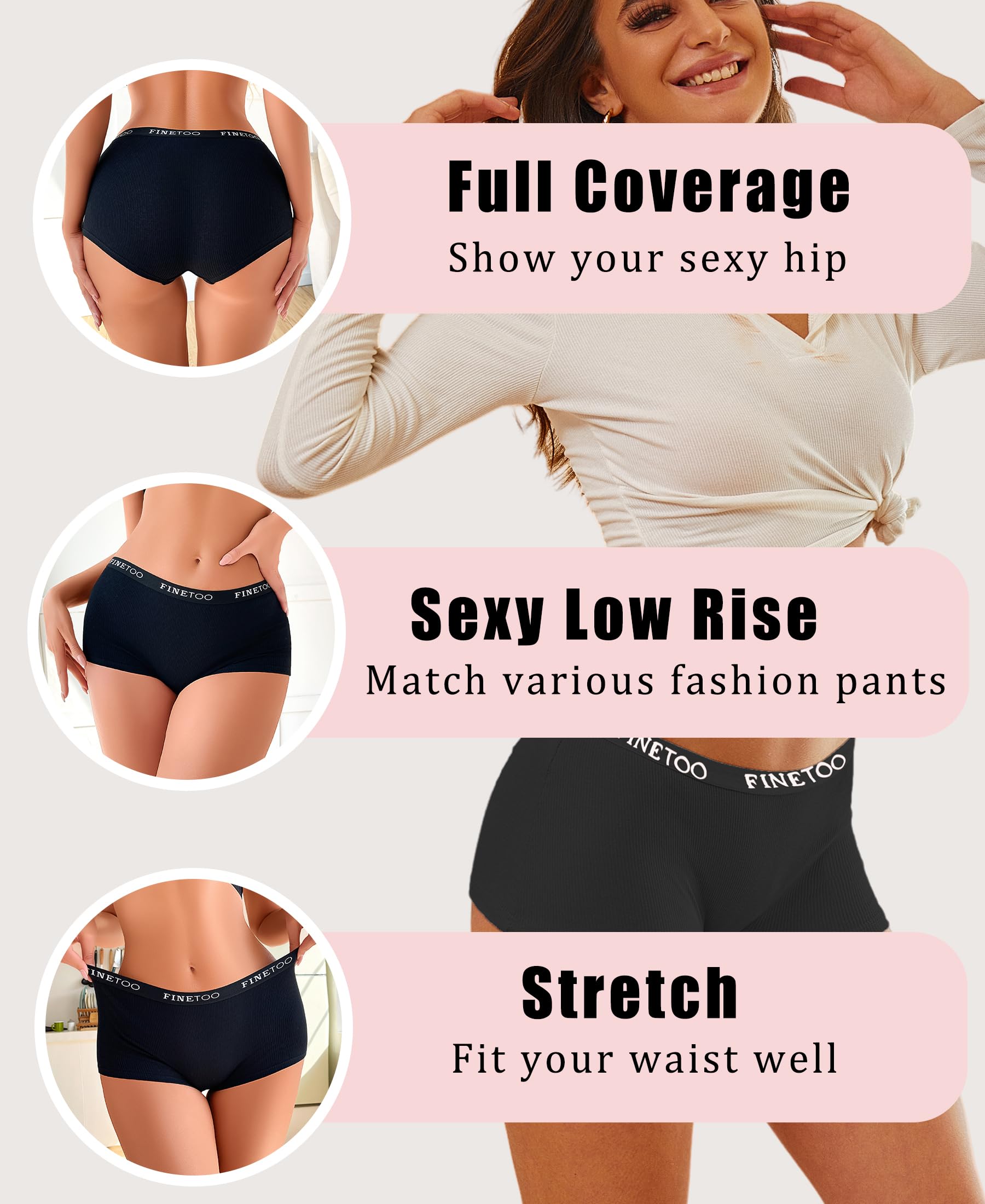 Classic womens underwear:Cotton panties with stretch FINETOO logo waistband,stay at your waist well. The belt doesn't shrink after washing.