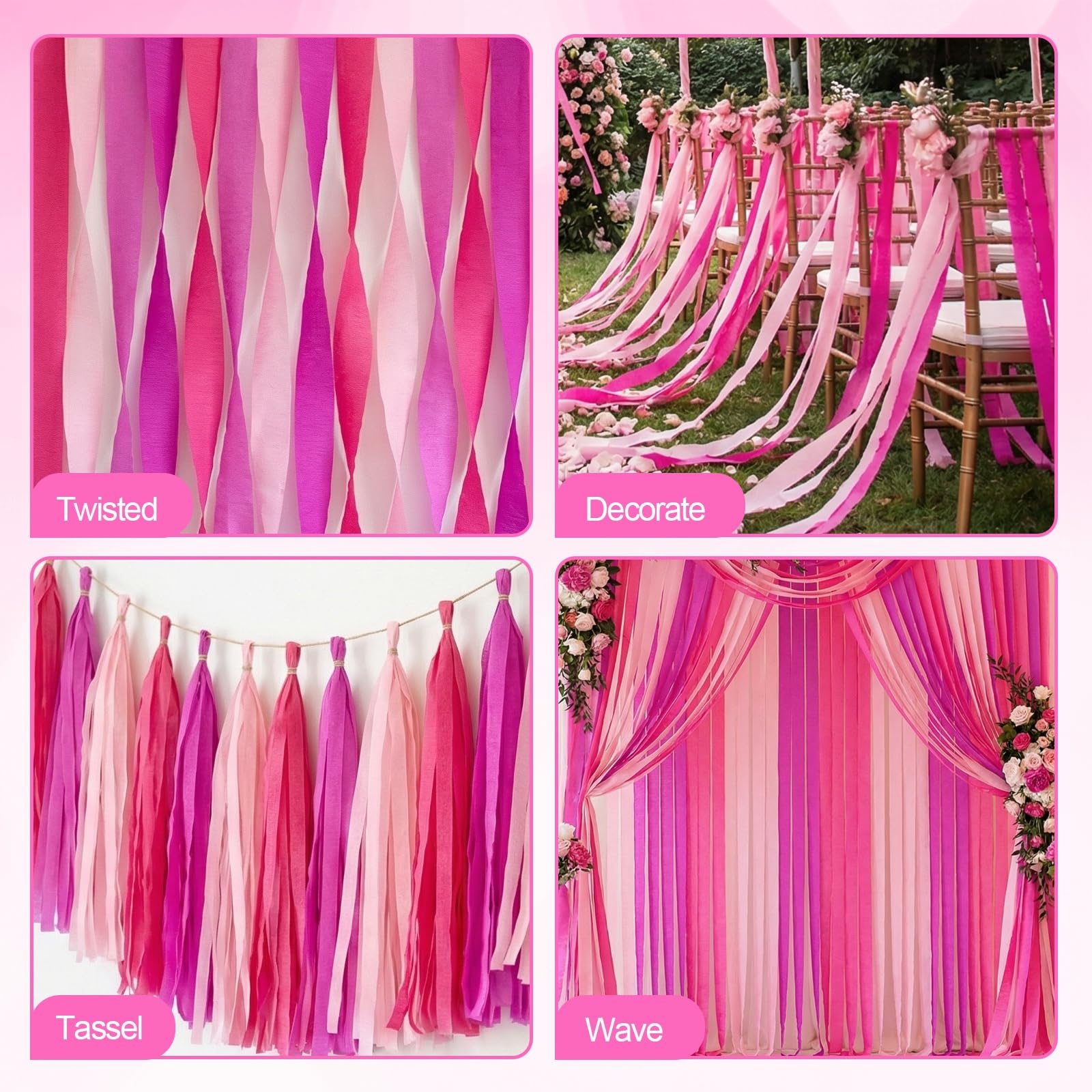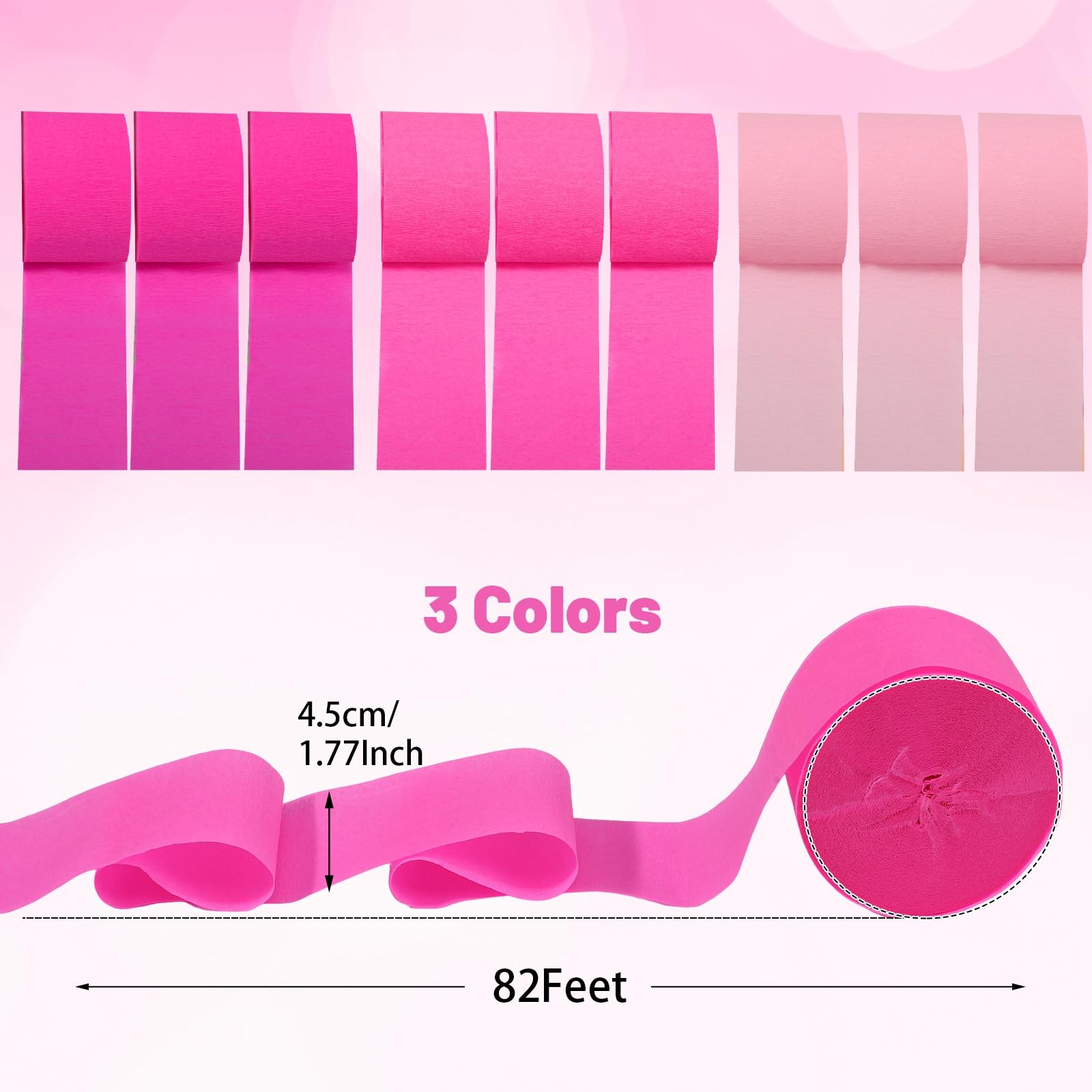 【Package Included】You will get 9 rolls of pink crepe paper streamers, each roll measures 82 feet long and 1.77 inch wide.