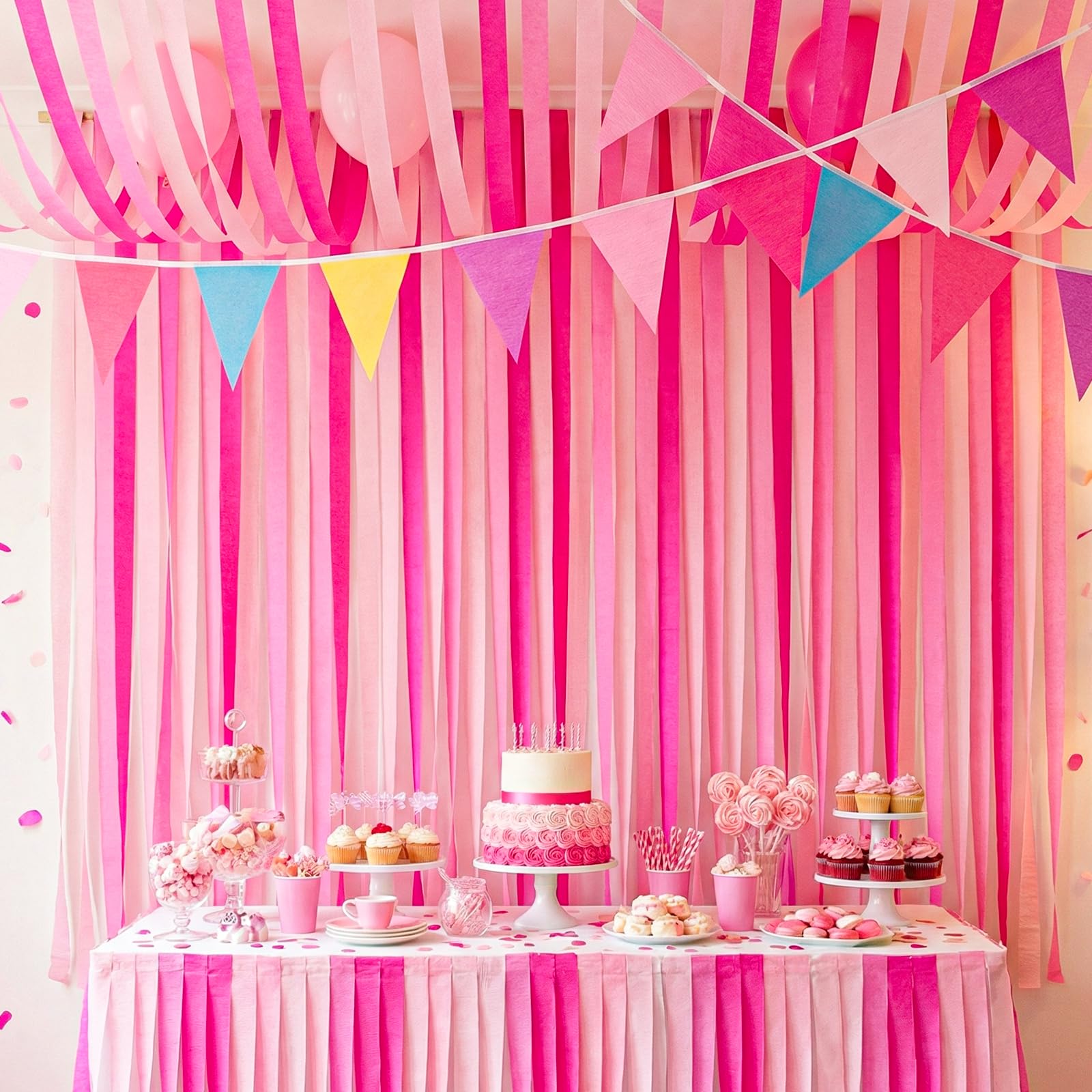 【Multicolor】The crepe paper has 3 colors, hot pink (3 rolls), pink (3 rolls), light pink(3 rolls).